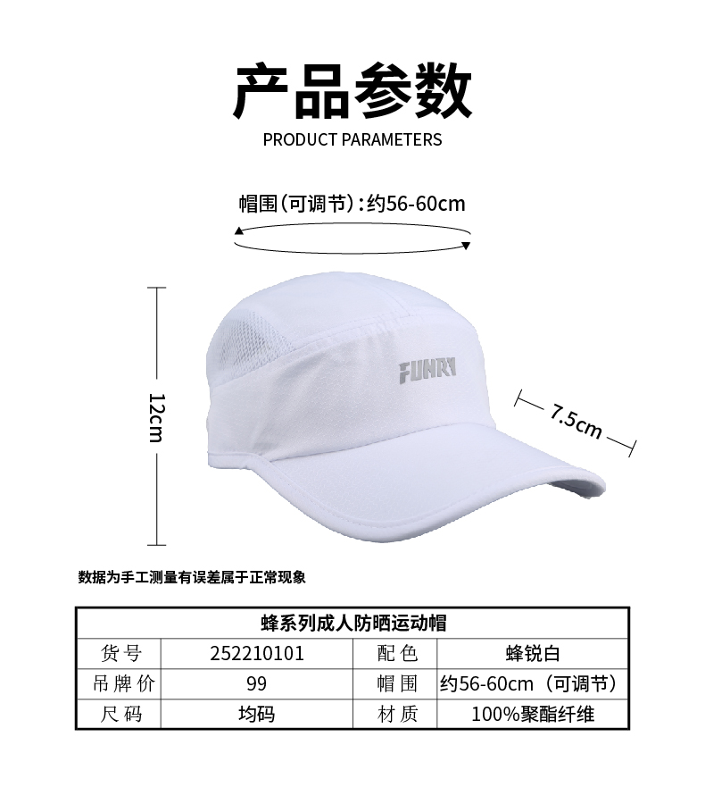 【UPF50+】蜂锐运动防晒帽户外跑步轻薄速干遮阳帽成人儿童