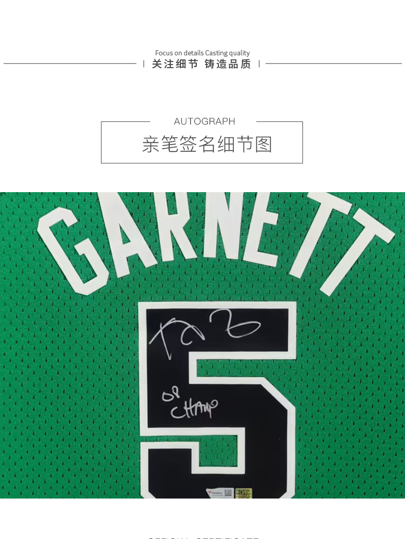 收藏系列 加内特 凯尔特人5号 铭文款 亲笔签名球衣