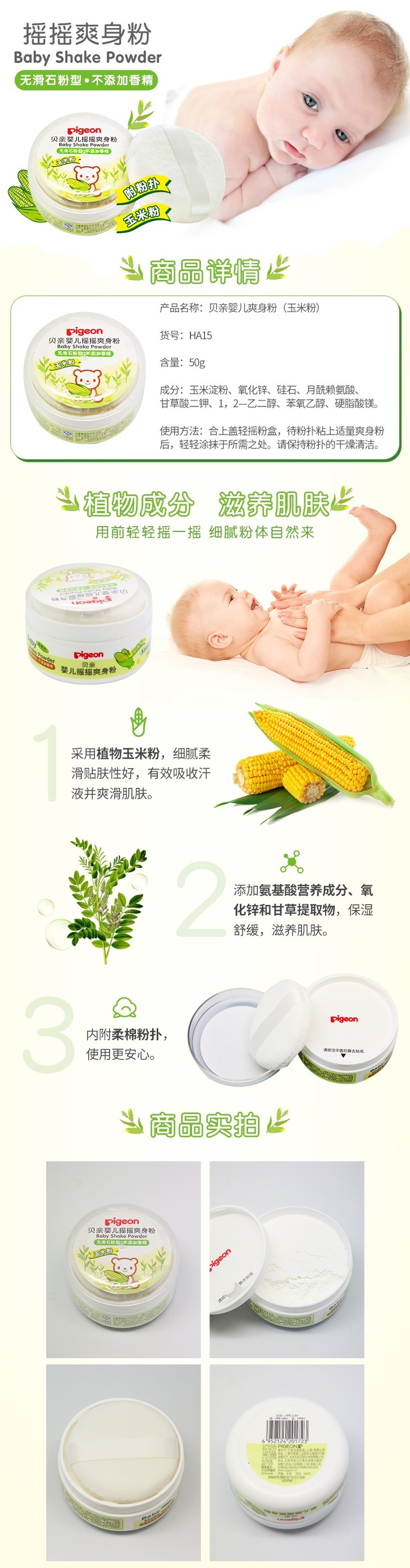 贝亲婴儿摇摇爽身粉(无滑石粉型50g)HA15