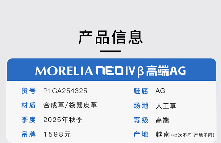 小李子美津浓莫雷拉Morelia Neo 高端AG短钉袋鼠皮足球鞋成人男