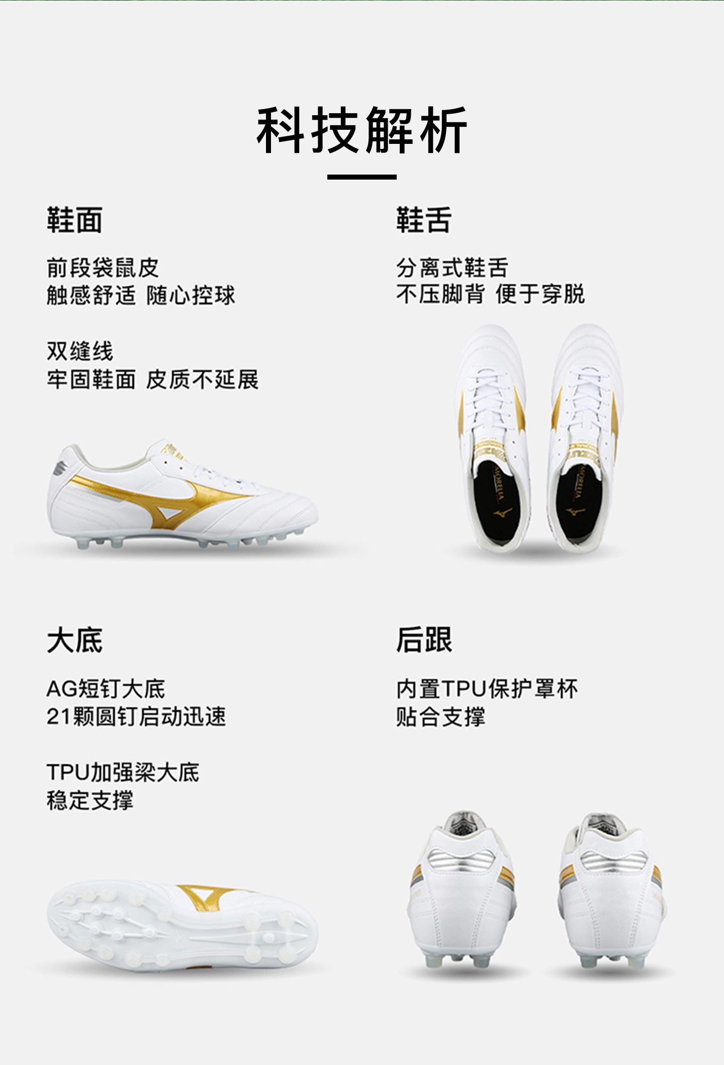 小李子Mizuno美津浓莫雷拉Morelia2次高端AG短钉袋鼠皮成人训练足球鞋男