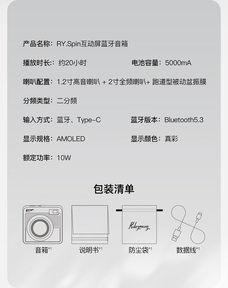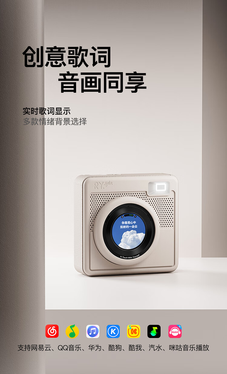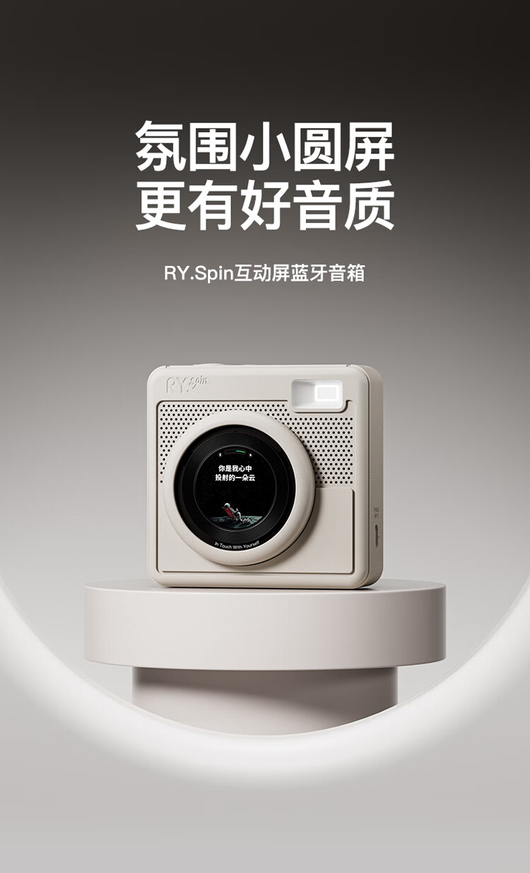 Rubyoung/如比扬 便携式互动屏蓝牙音箱RY.spin 蓝牙5.3歌词字幕音响存储音乐电子相册白噪音便携音箱创意礼物