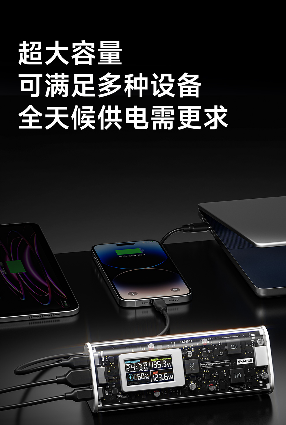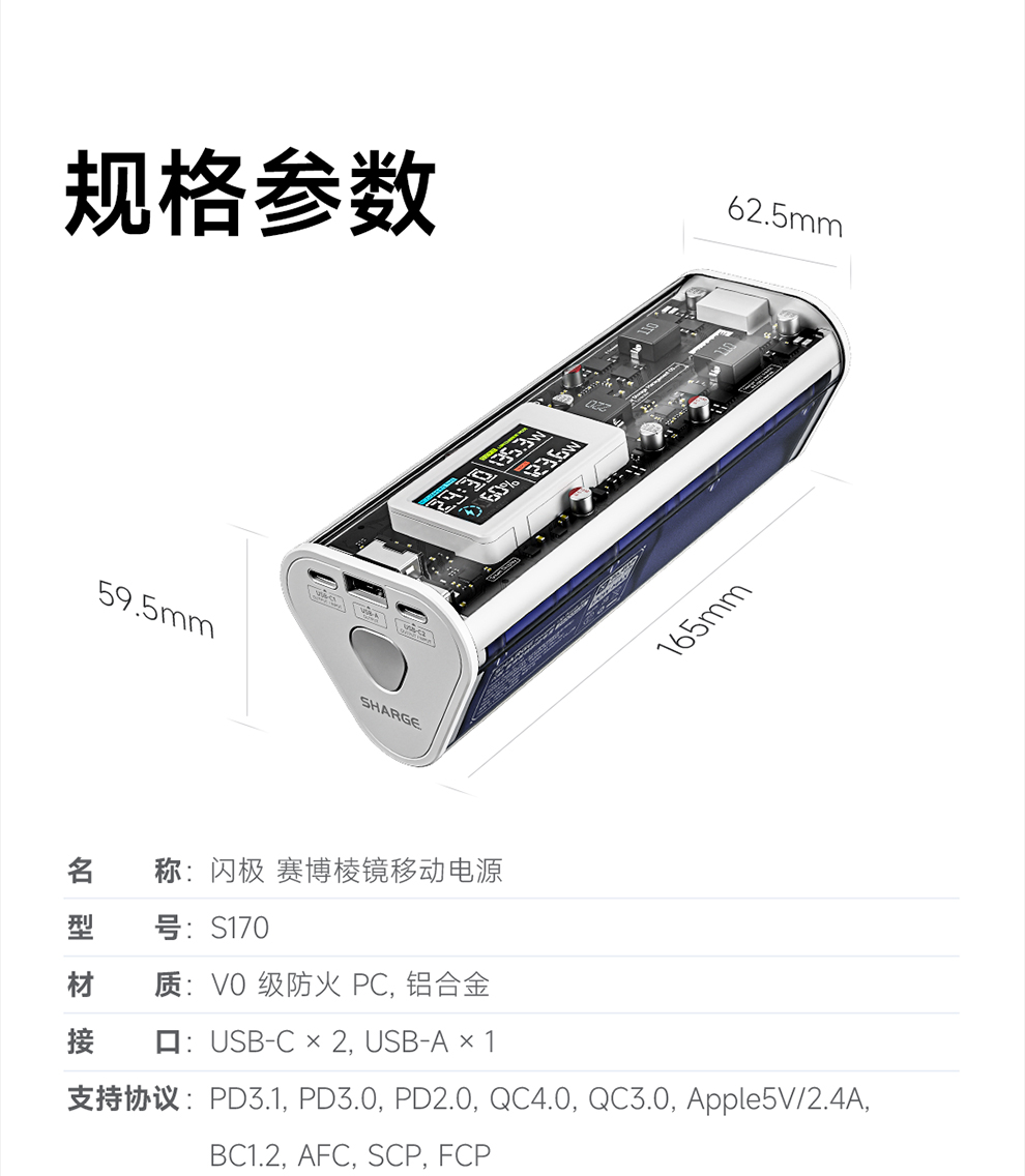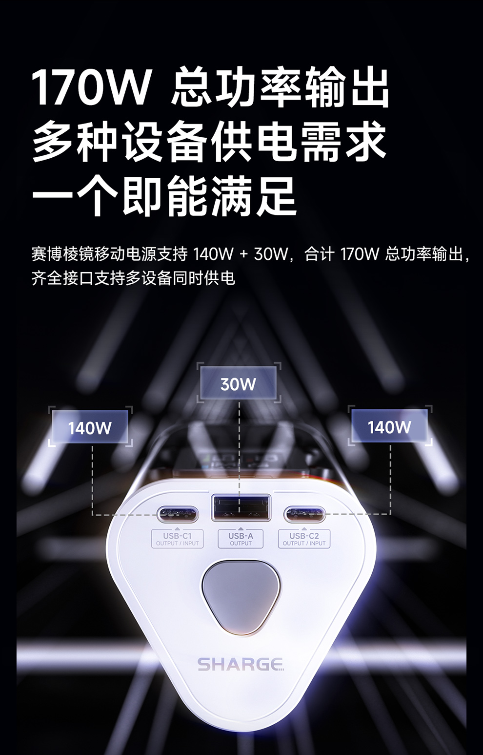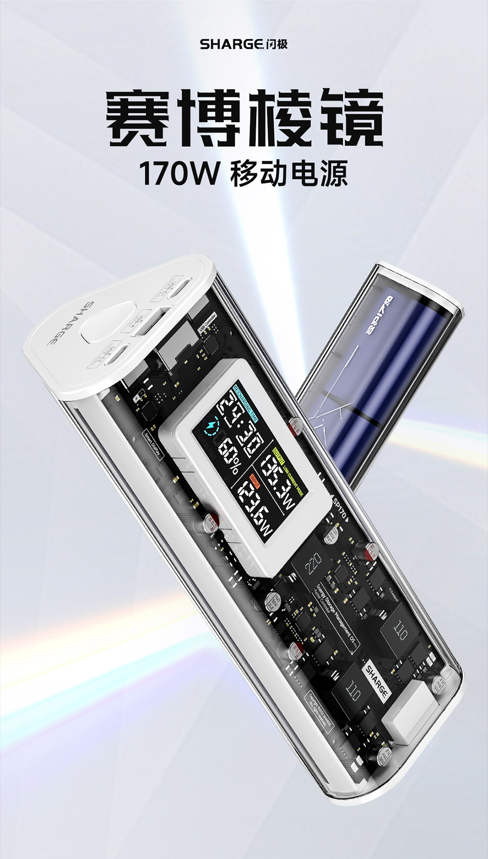 SHARGE/闪极 赛博棱镜移动电源 24000mAh 适用于苹果17小米华为手机平板可带上飞机高铁