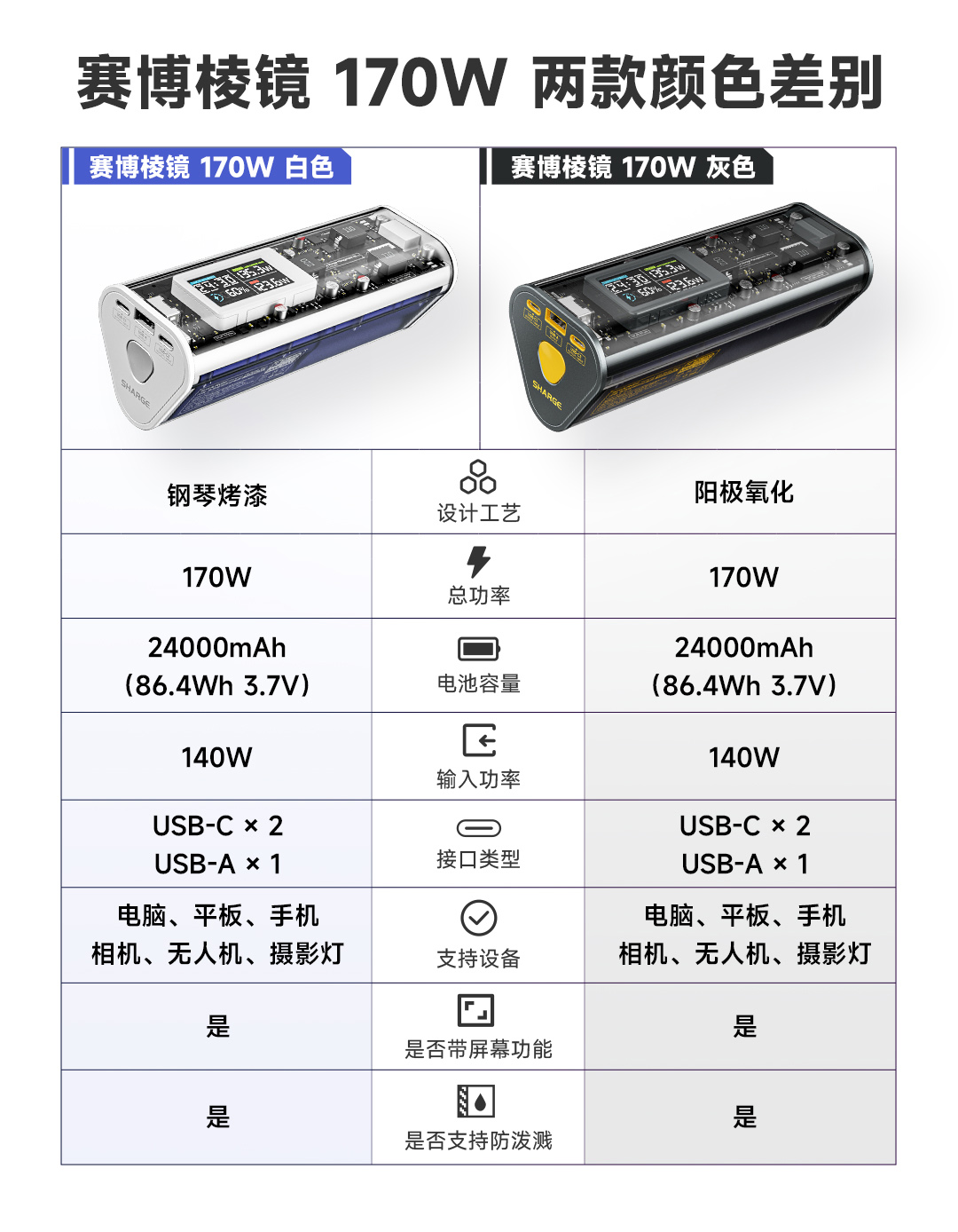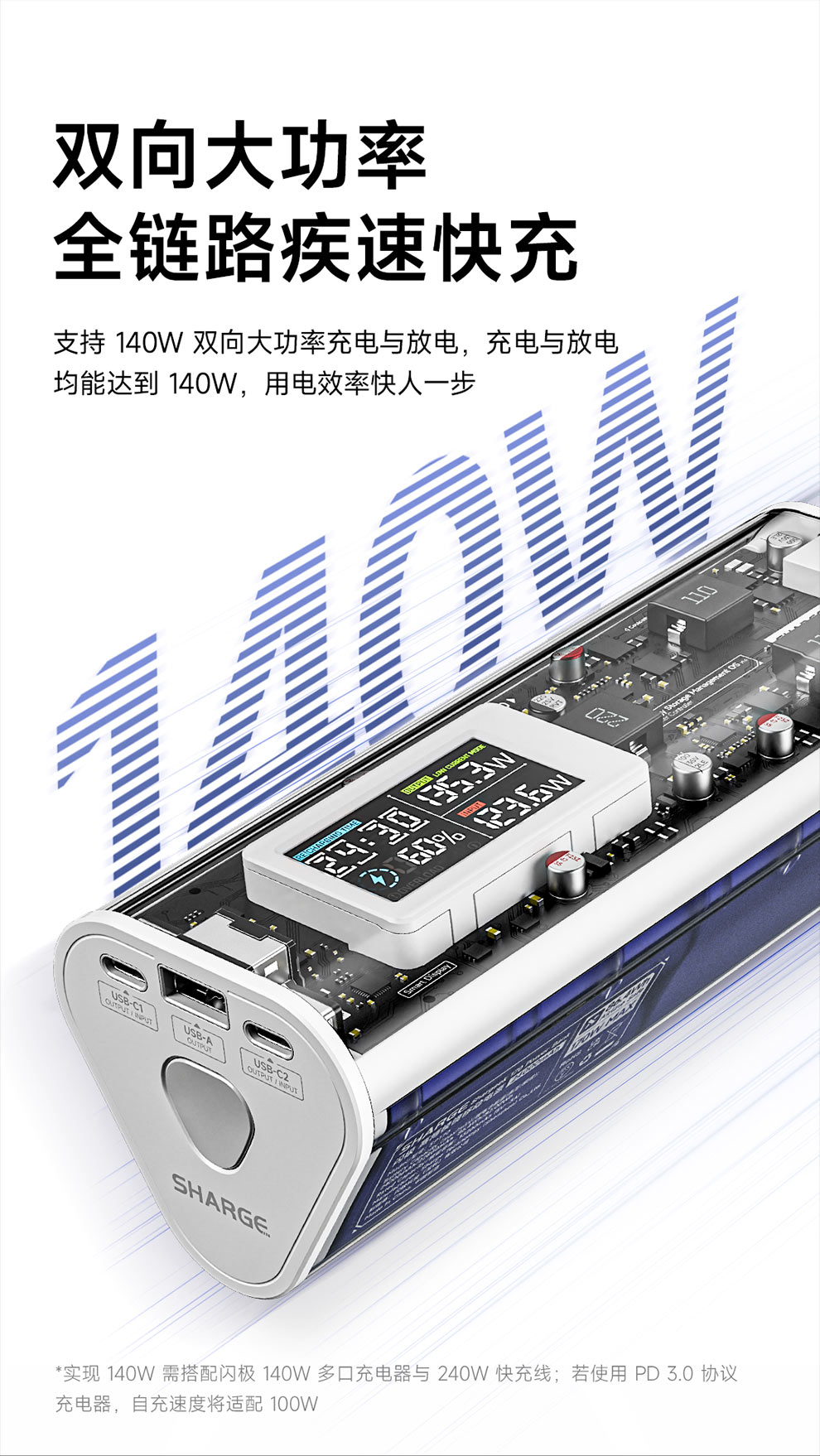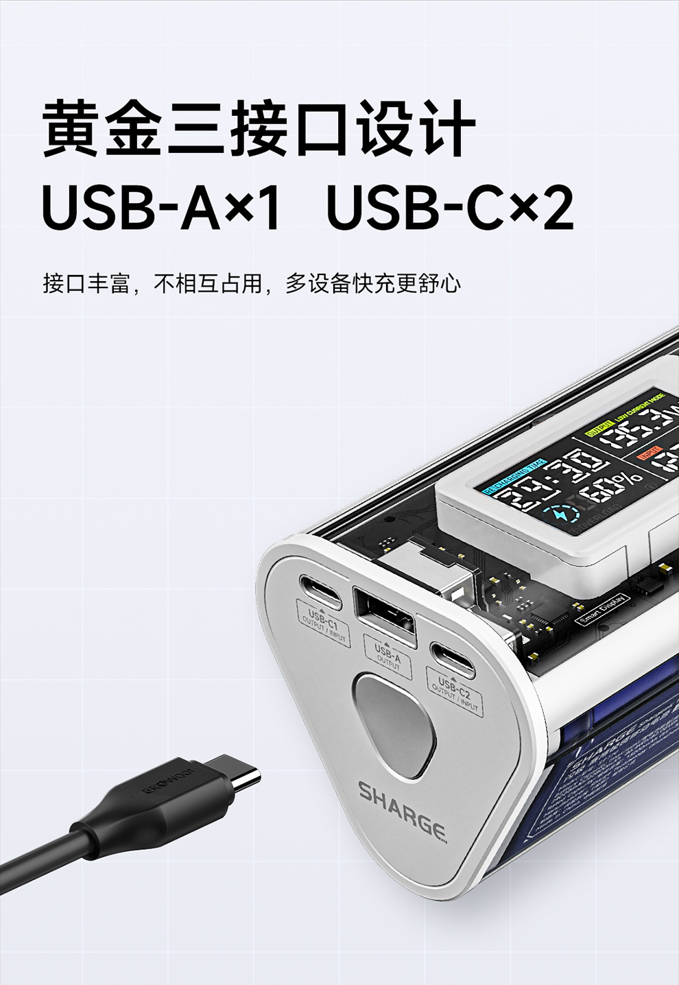 SHARGE/闪极 赛博棱镜移动电源 24000mAh 适用于苹果17小米华为手机平板可带上飞机高铁