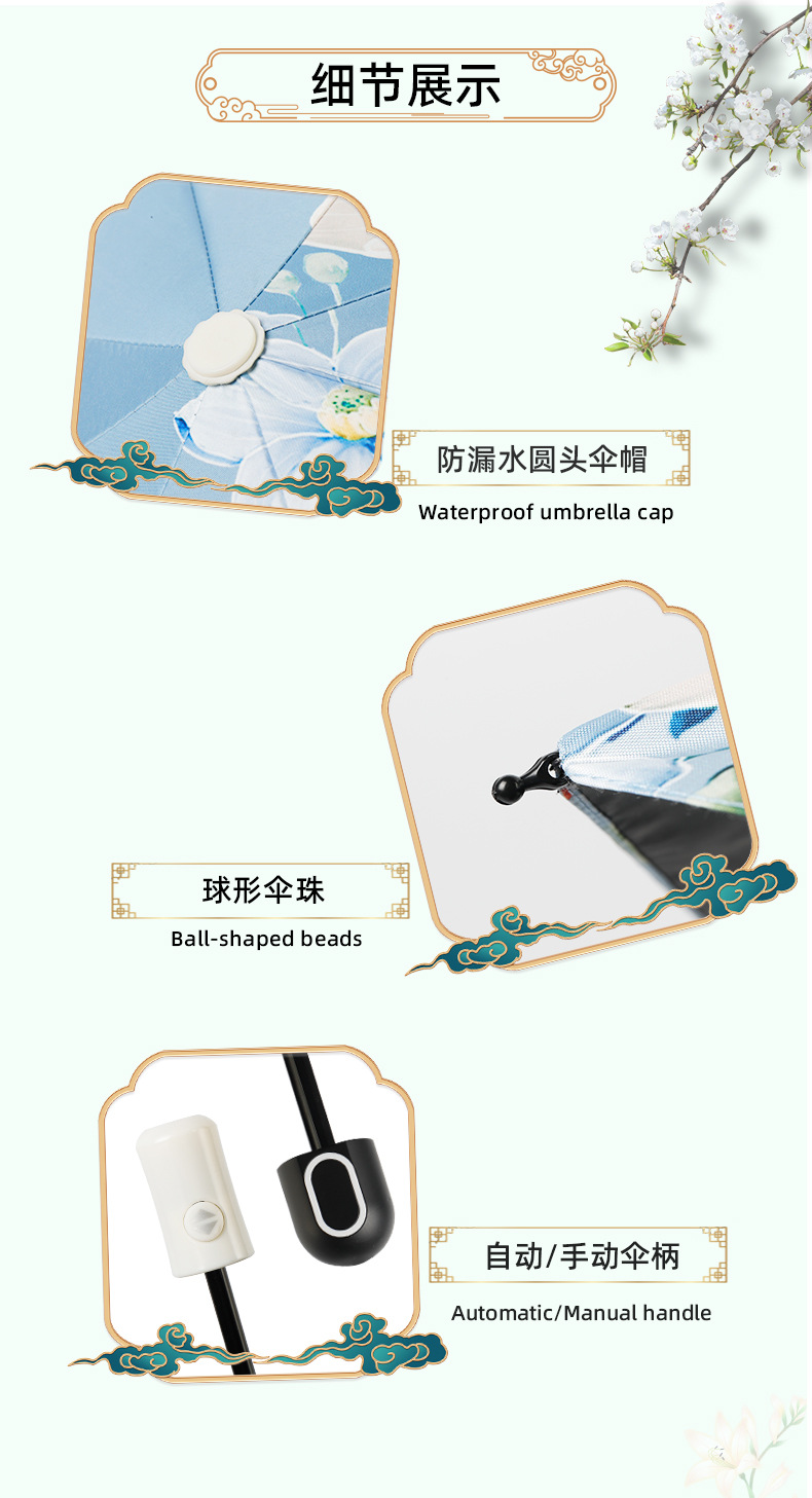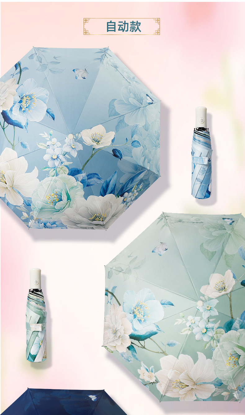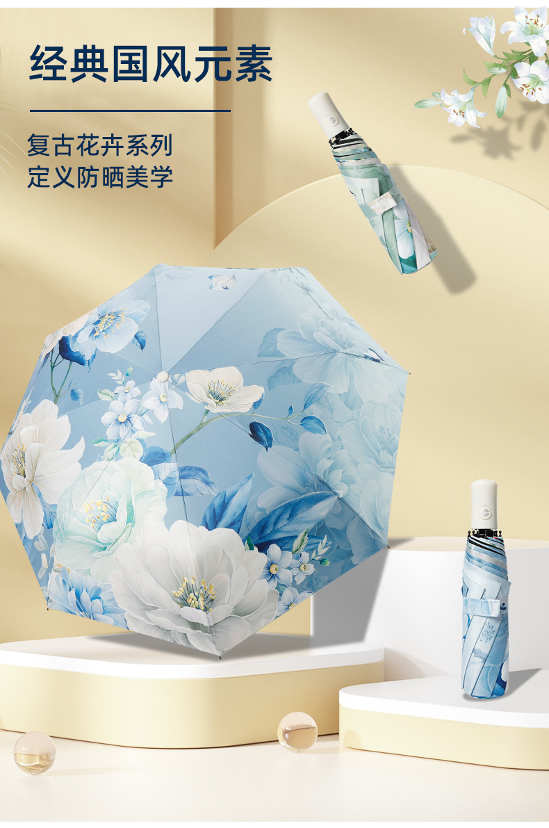「国风复古款!晴雨两用」三折雨伞黑胶国风牡丹防晒伞 居家日用防晒晴雨伞太阳伞折叠伞