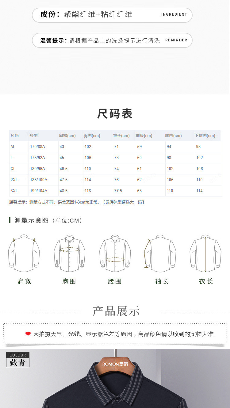 【40棉】罗蒙衬衫男长袖正装商务男士通勤百搭棉质纯色衬衣男