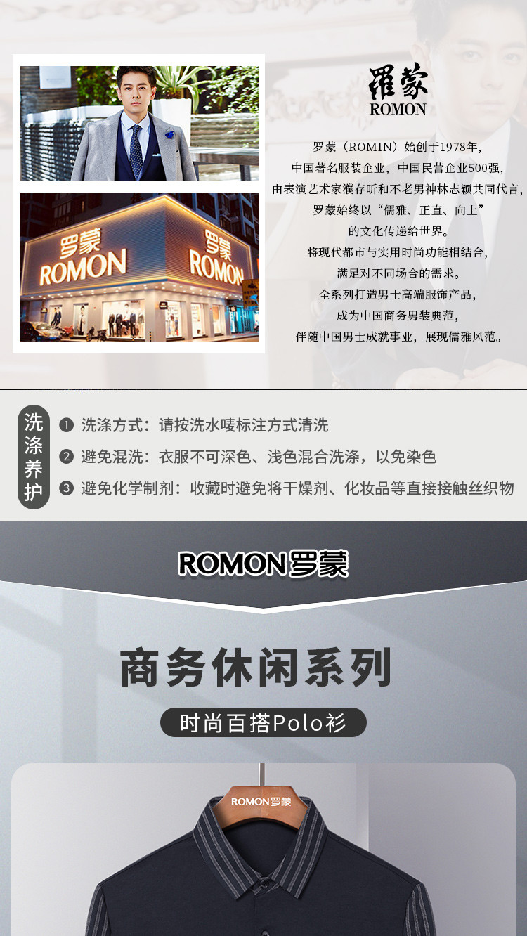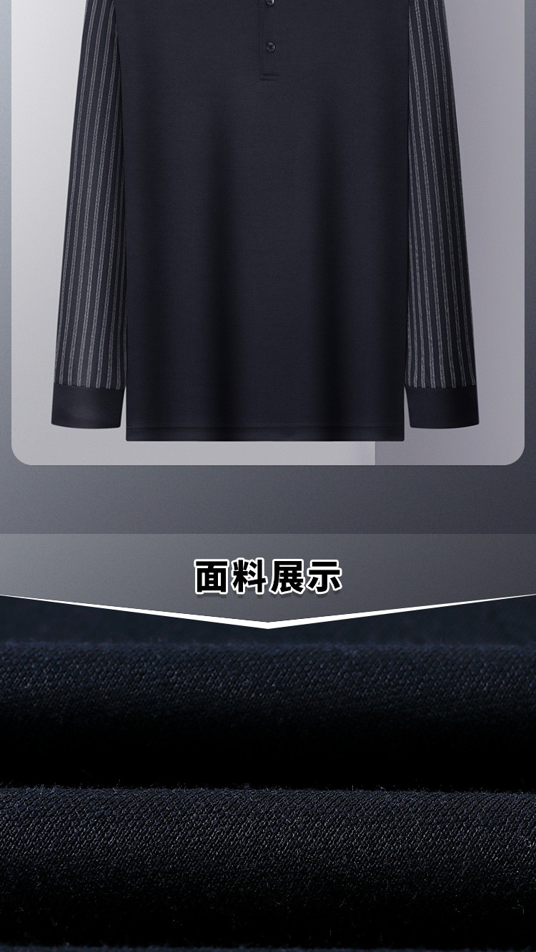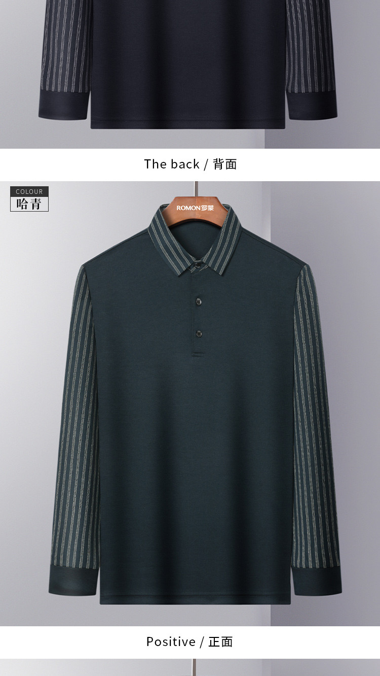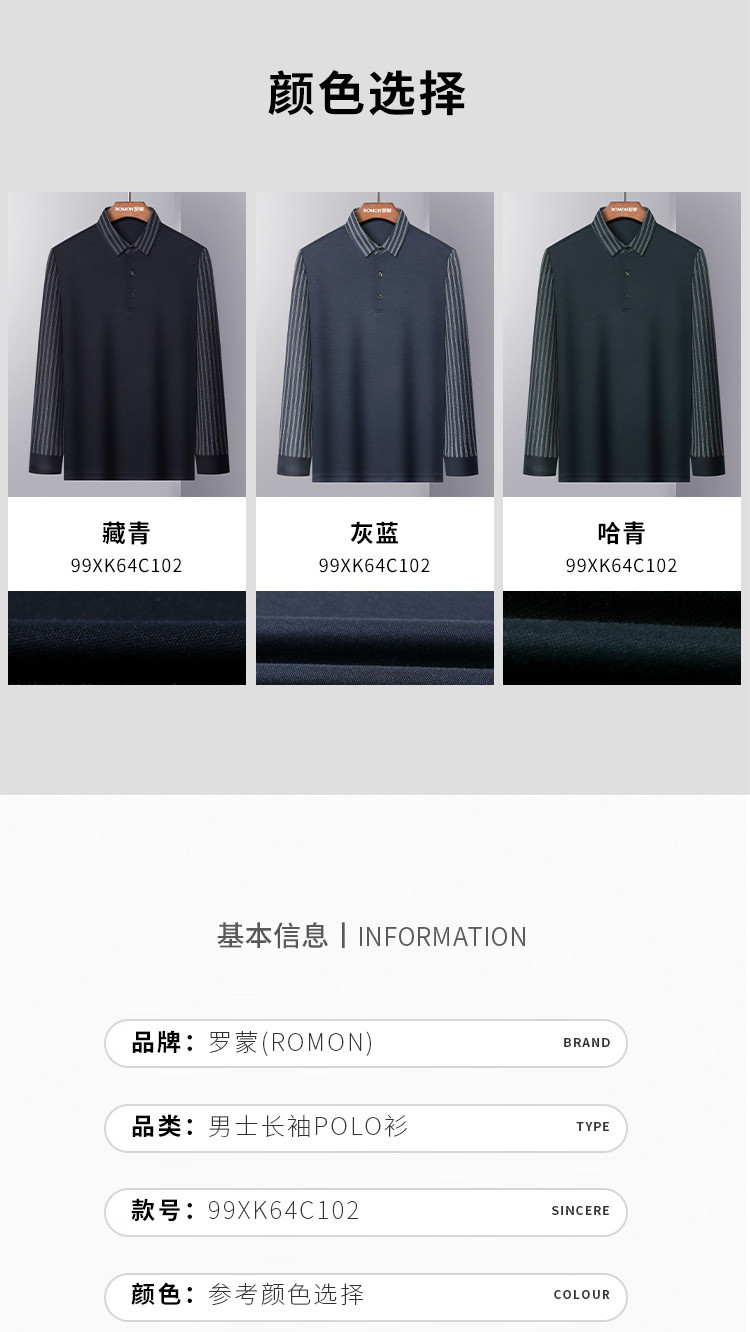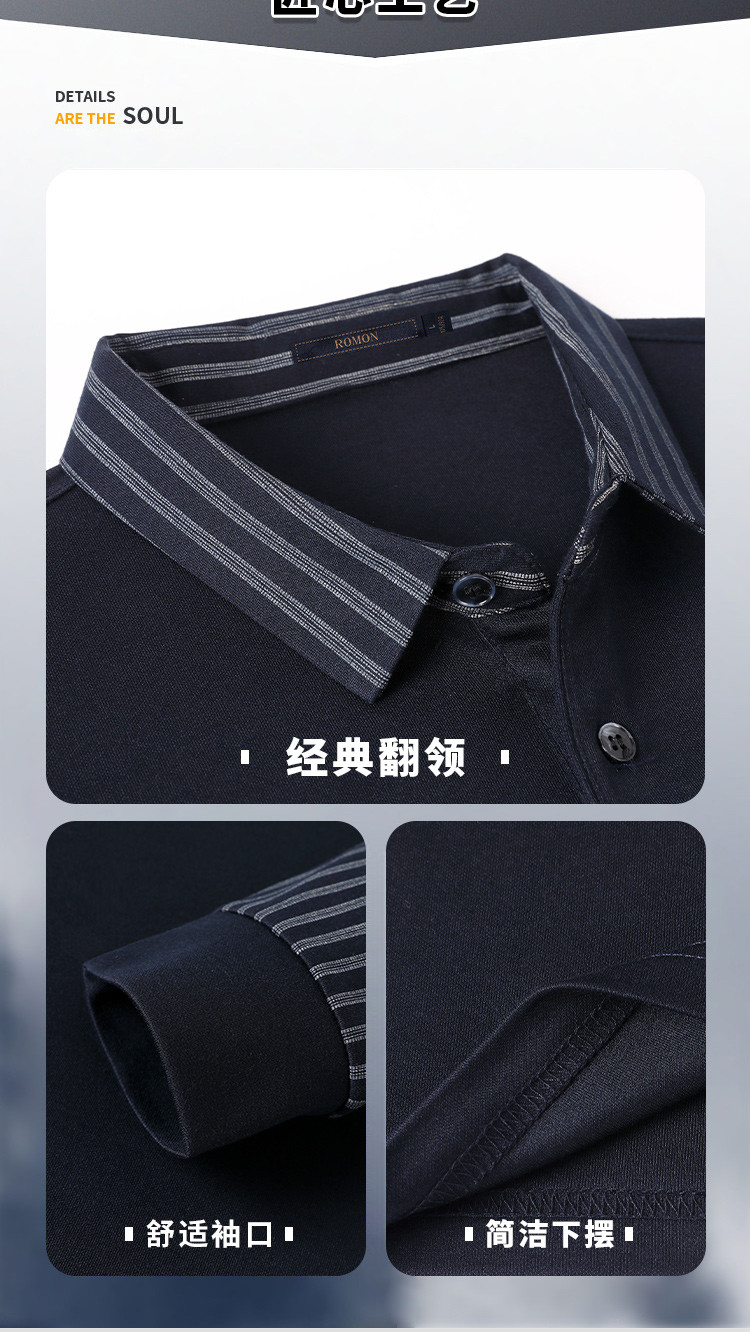 【含桑蚕丝】罗蒙男士春秋长袖polo衫男商务时尚舒适翻领百搭长袖t恤男