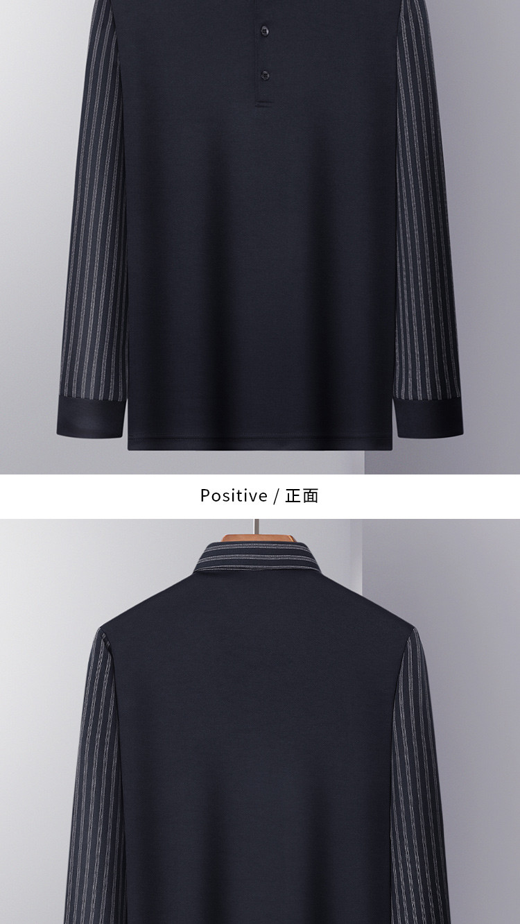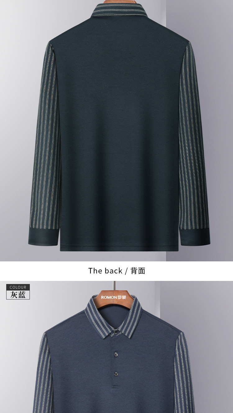 【拼色条纹】罗蒙polo衫男长袖春夏新款商务休闲通勤百搭男士t恤