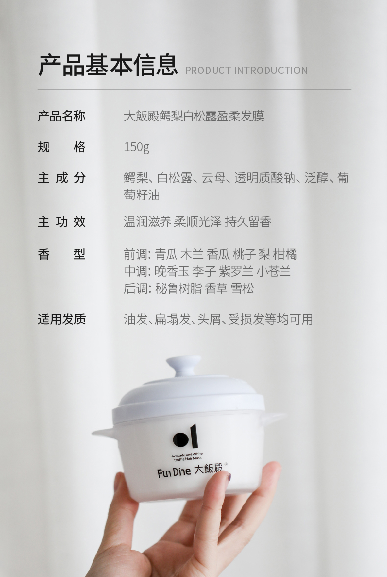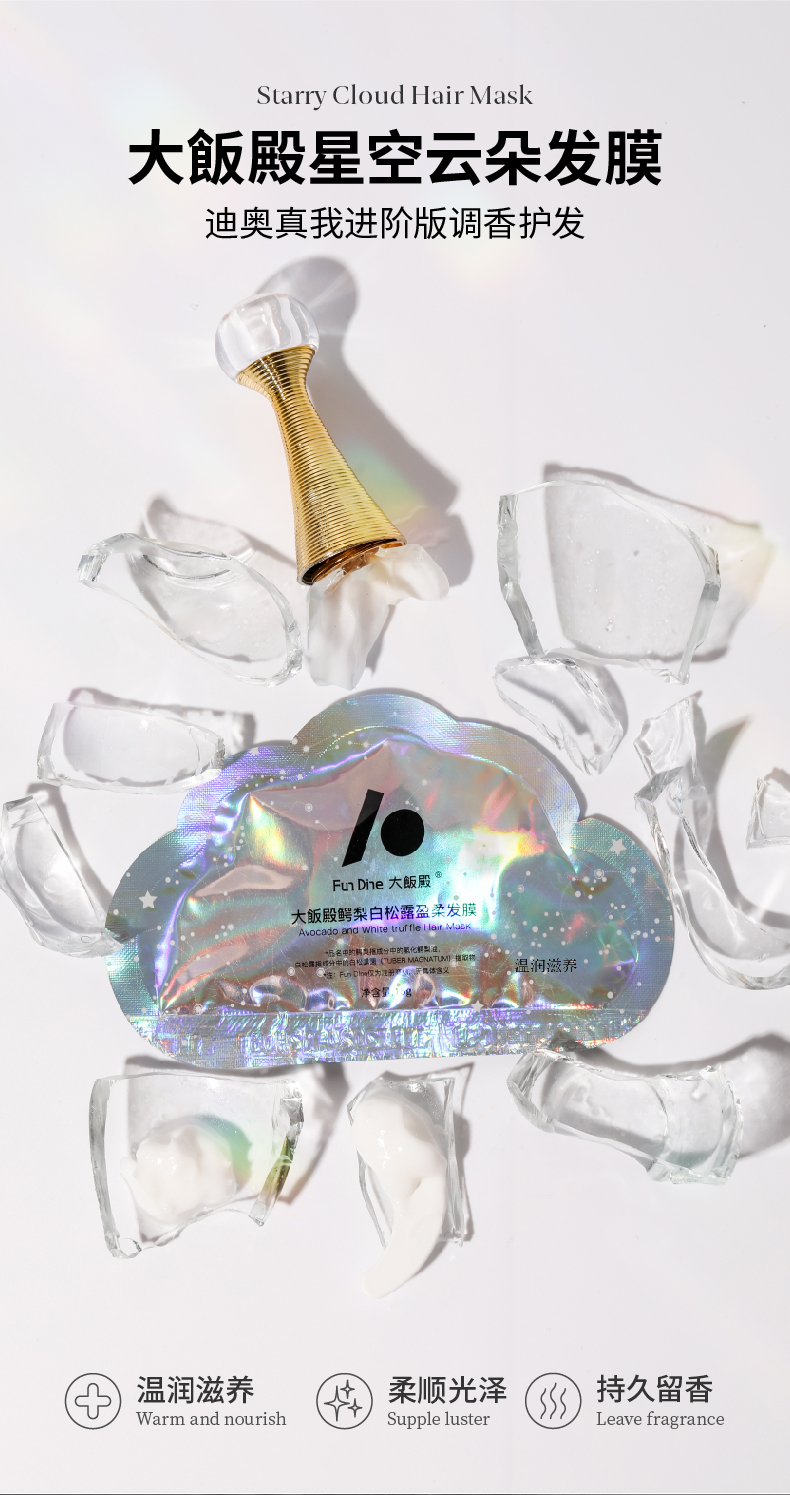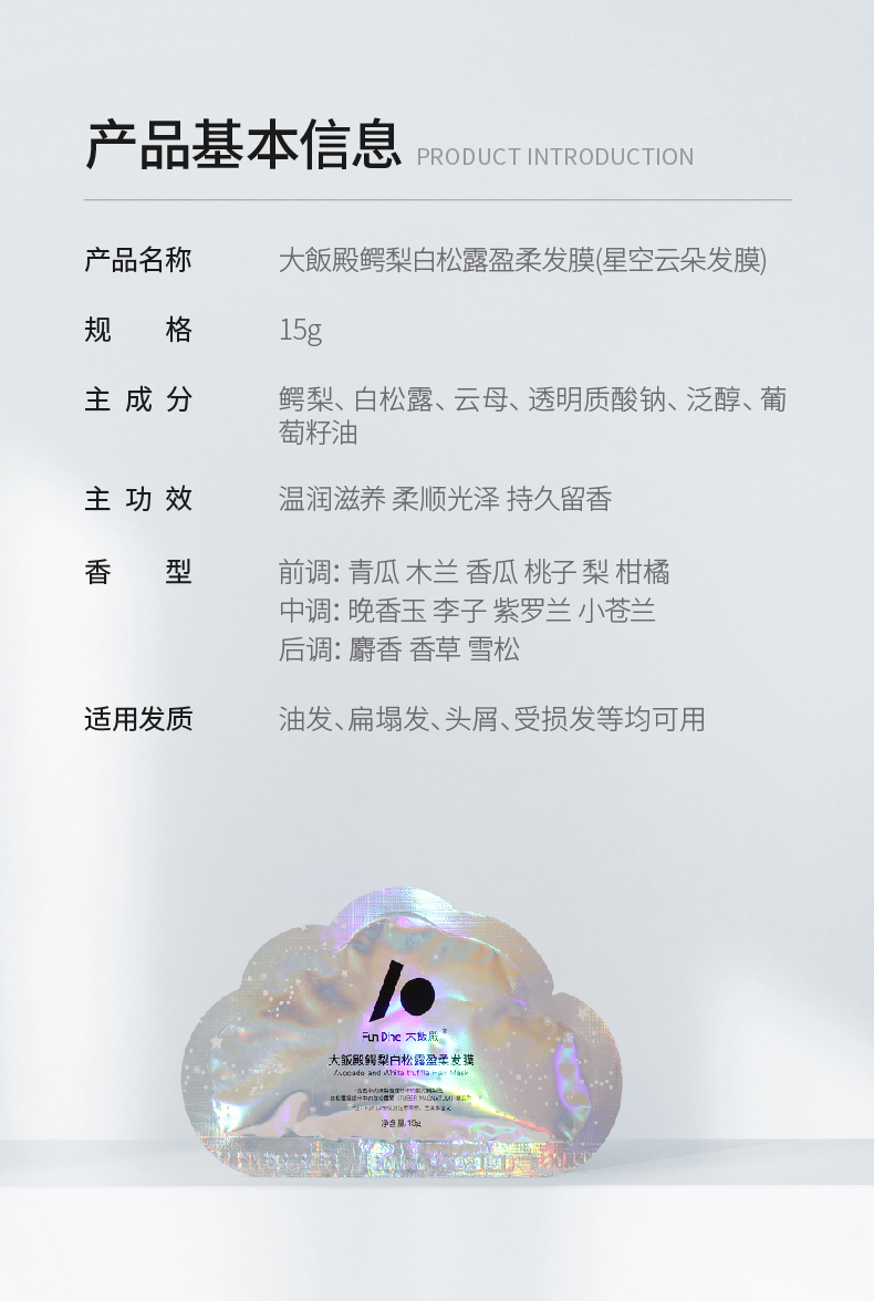 大饭殿 鳄梨白松露盈柔星空发膜持久留香150g(赠盈柔发膜150g*1+云朵发膜15g*10)[福利品]