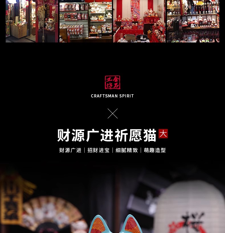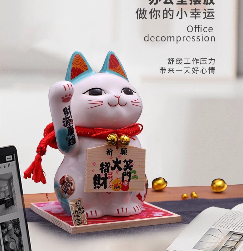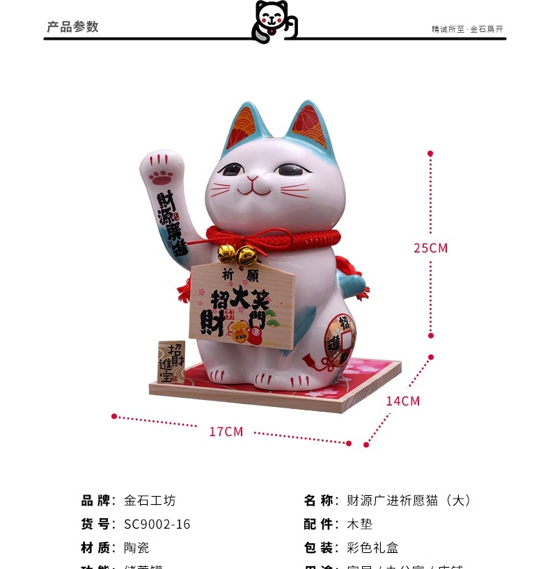 金石工坊招财猫大号摆件店铺开业二维码祈愿猫家居客厅陶瓷存钱罐财源广进富贵临门祈愿猫(大)