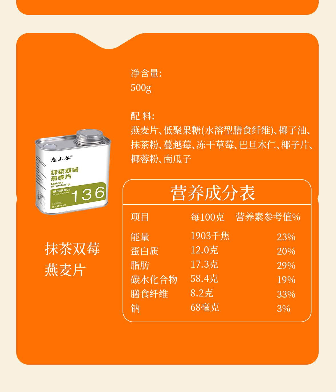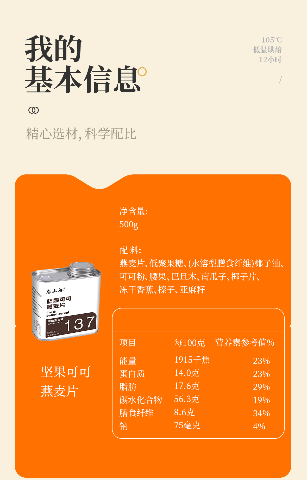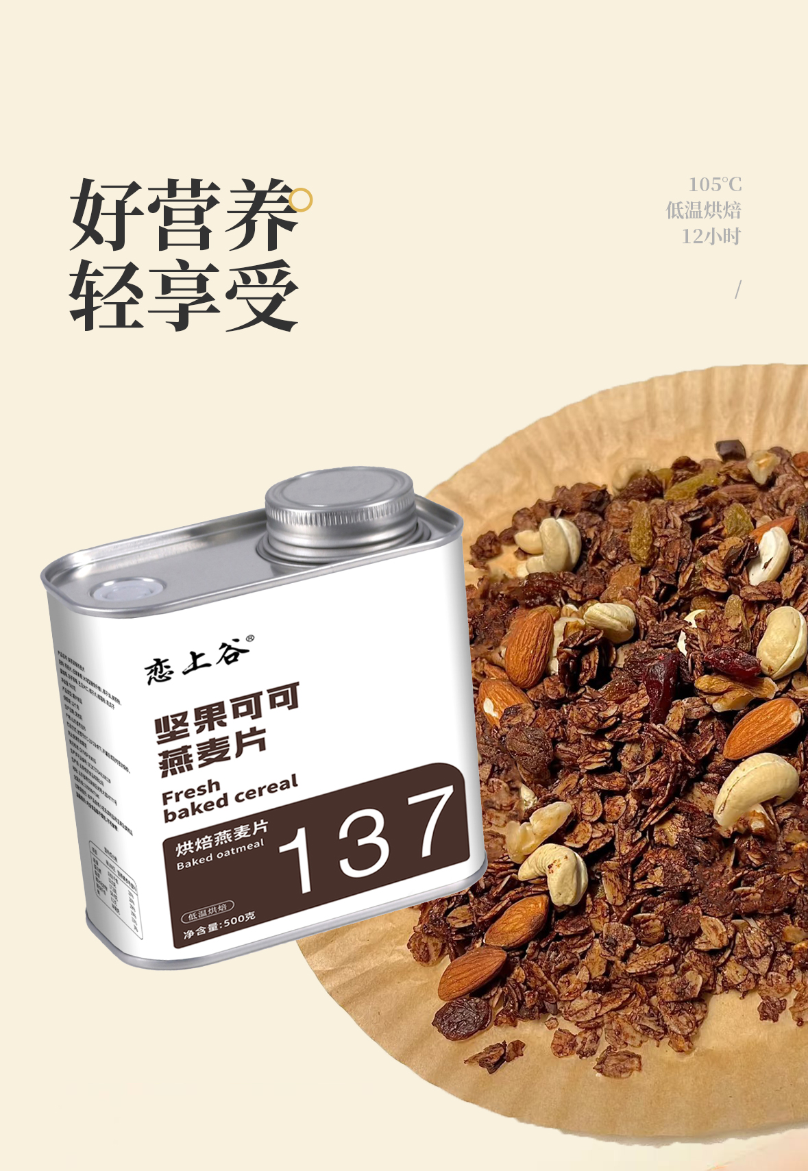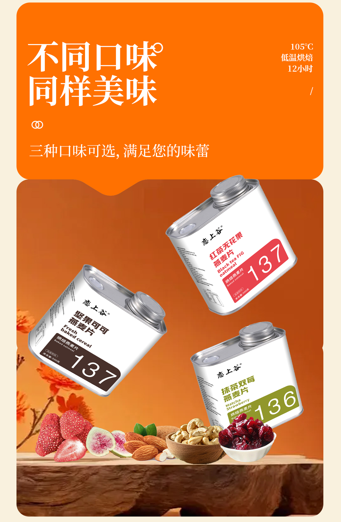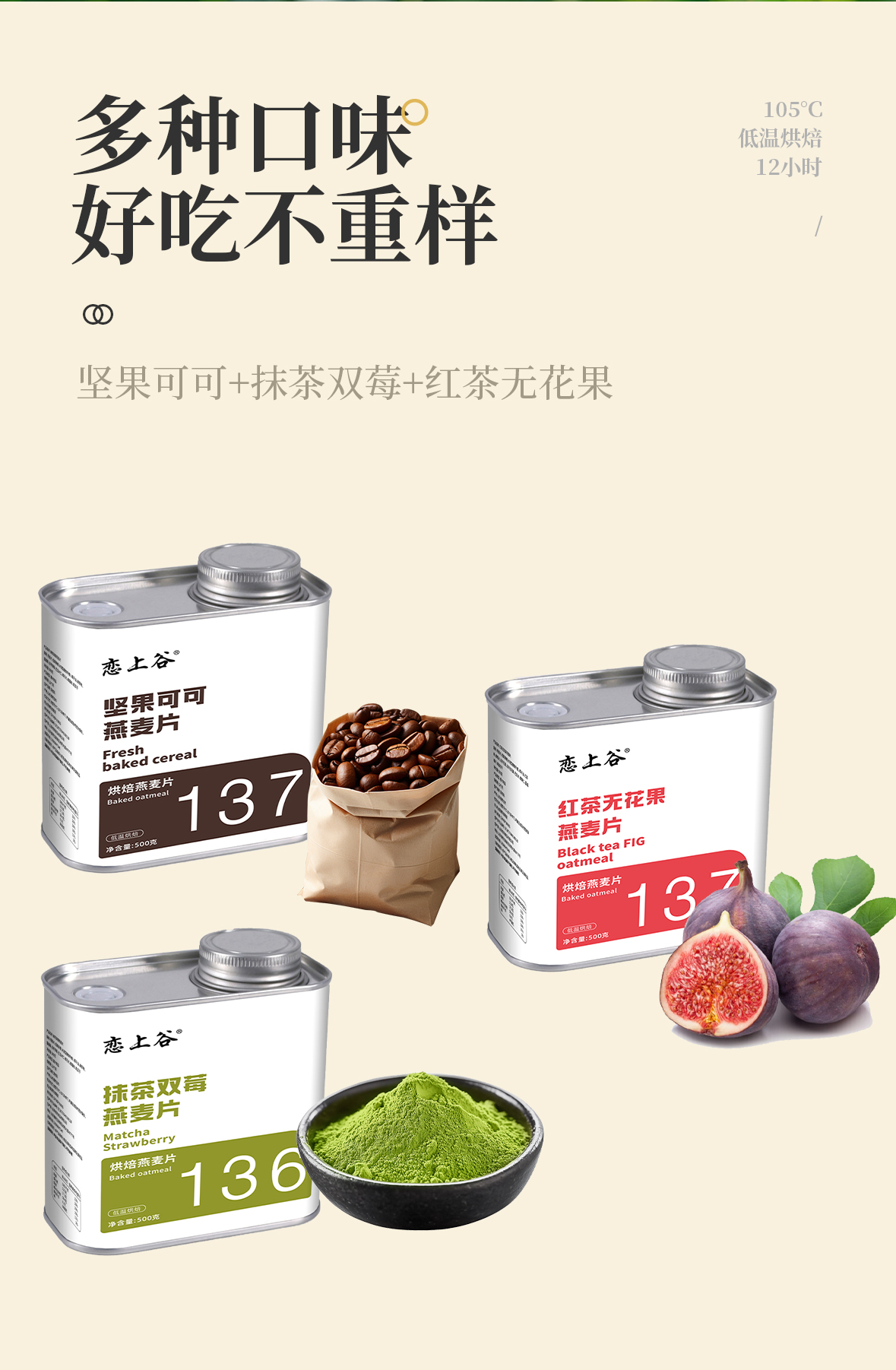 3种口味烘焙燕麦片 多种水果坚果营养配比 可干吃可冲泡 500克一罐