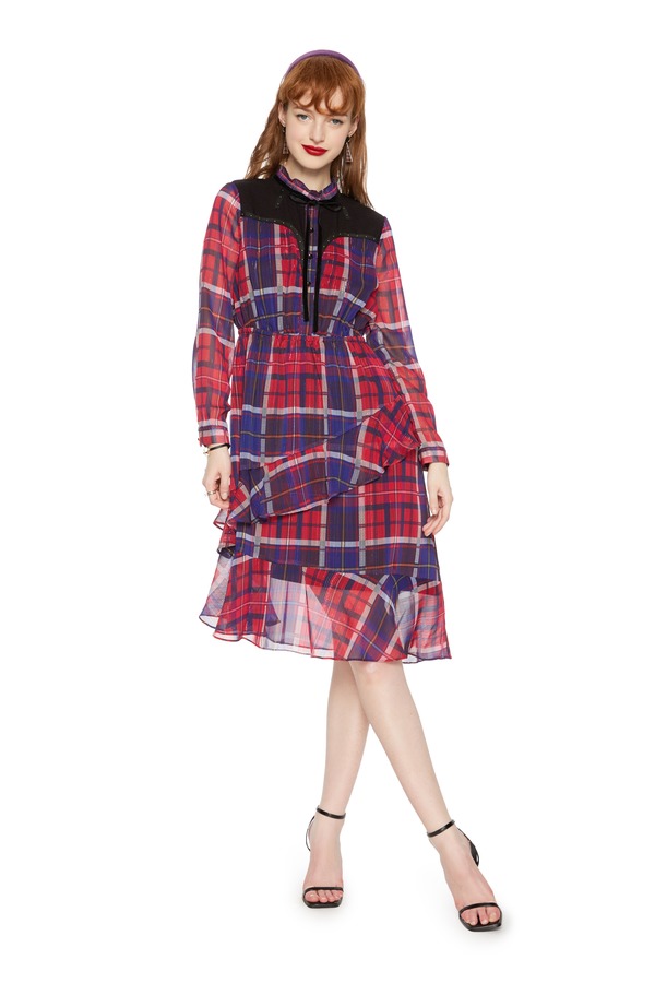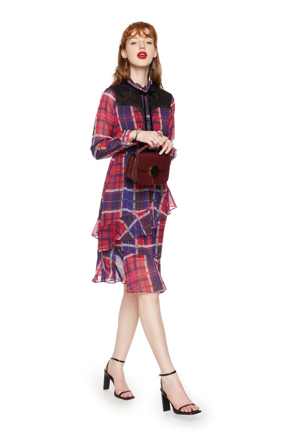 WEN&VI 藕粉色喇叭袖连衣裙 1726