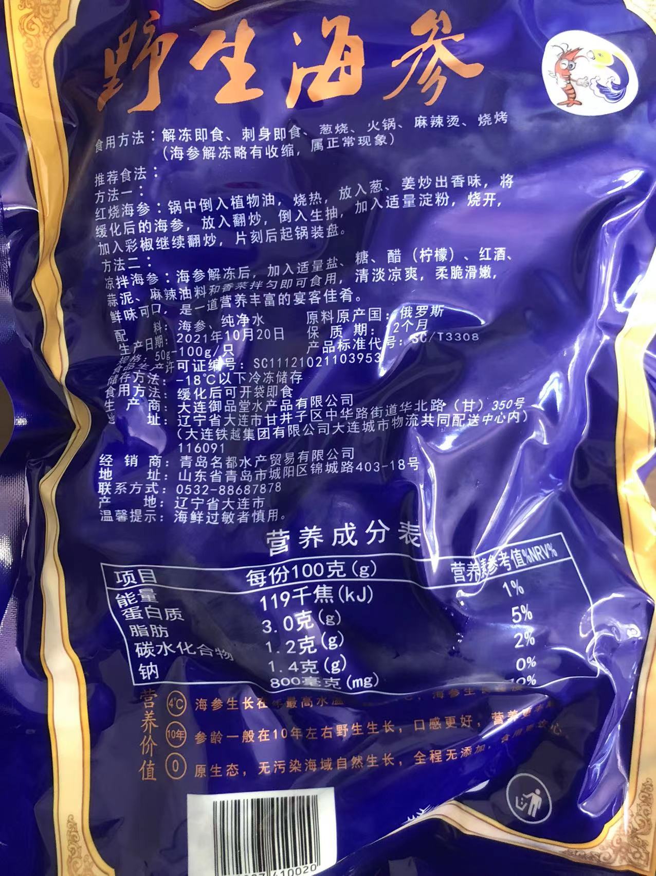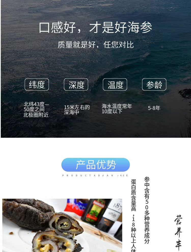 冷冻【顺丰包邮】俄罗斯北极海参 即食 500g*2