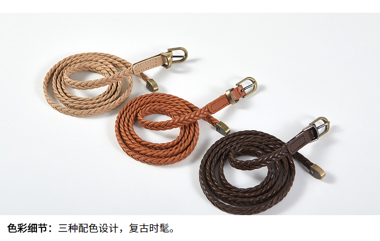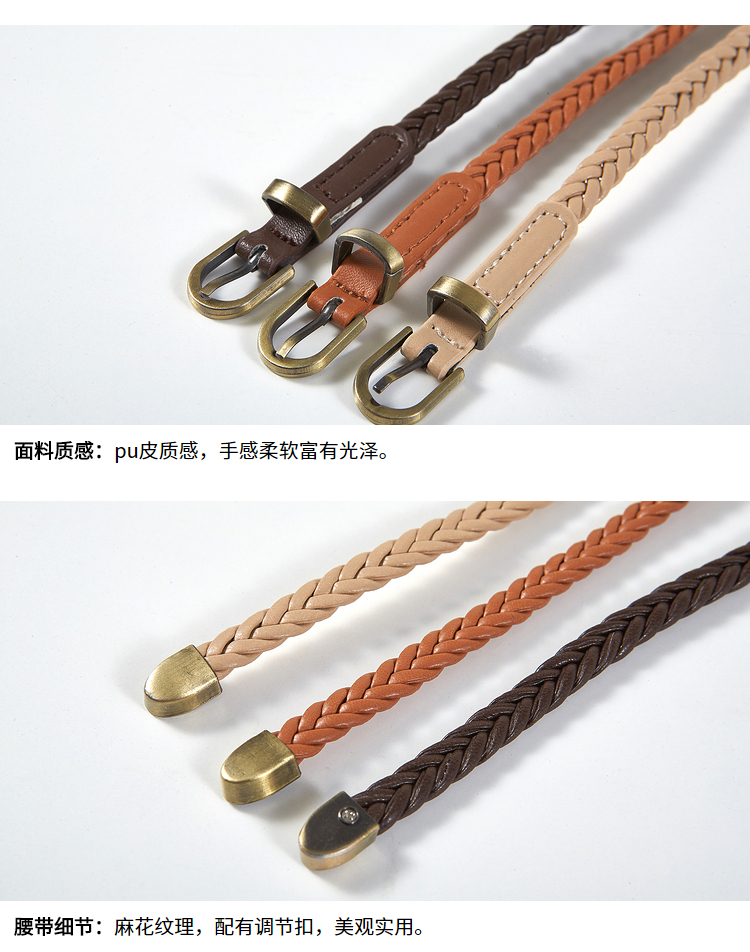 两三事 摇摆烈曲 2023夏季新款百搭麻花编织PU细腰带女款