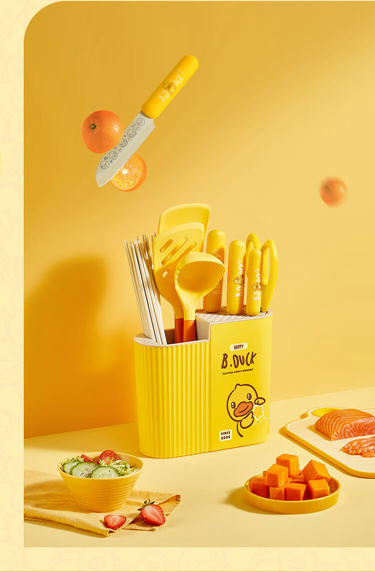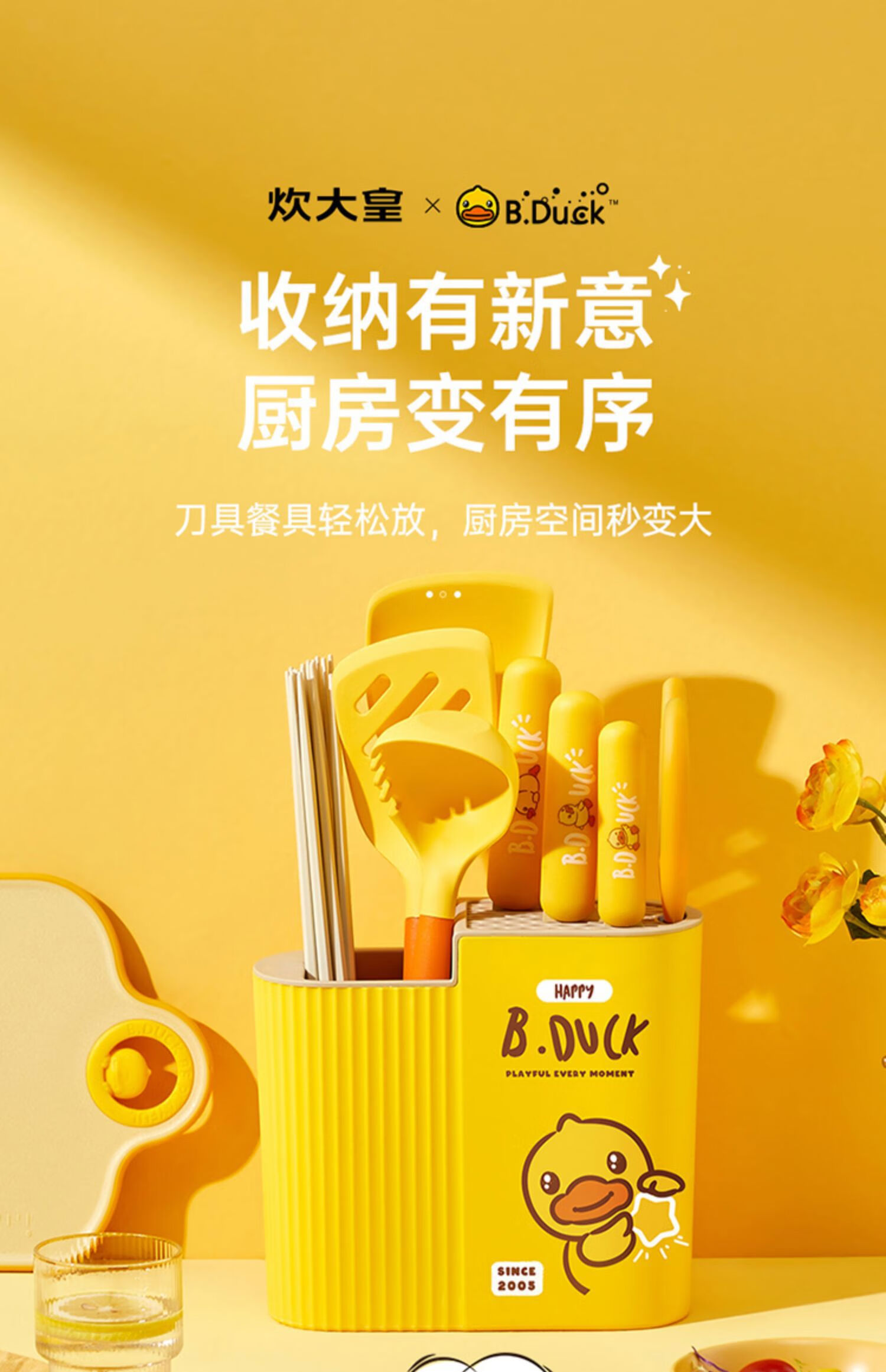 炊大皇BDuck小黄鸭刀座厨房置物架刀架台面款筷子笼一体收纳盒 小黄鸭刀座收纳架