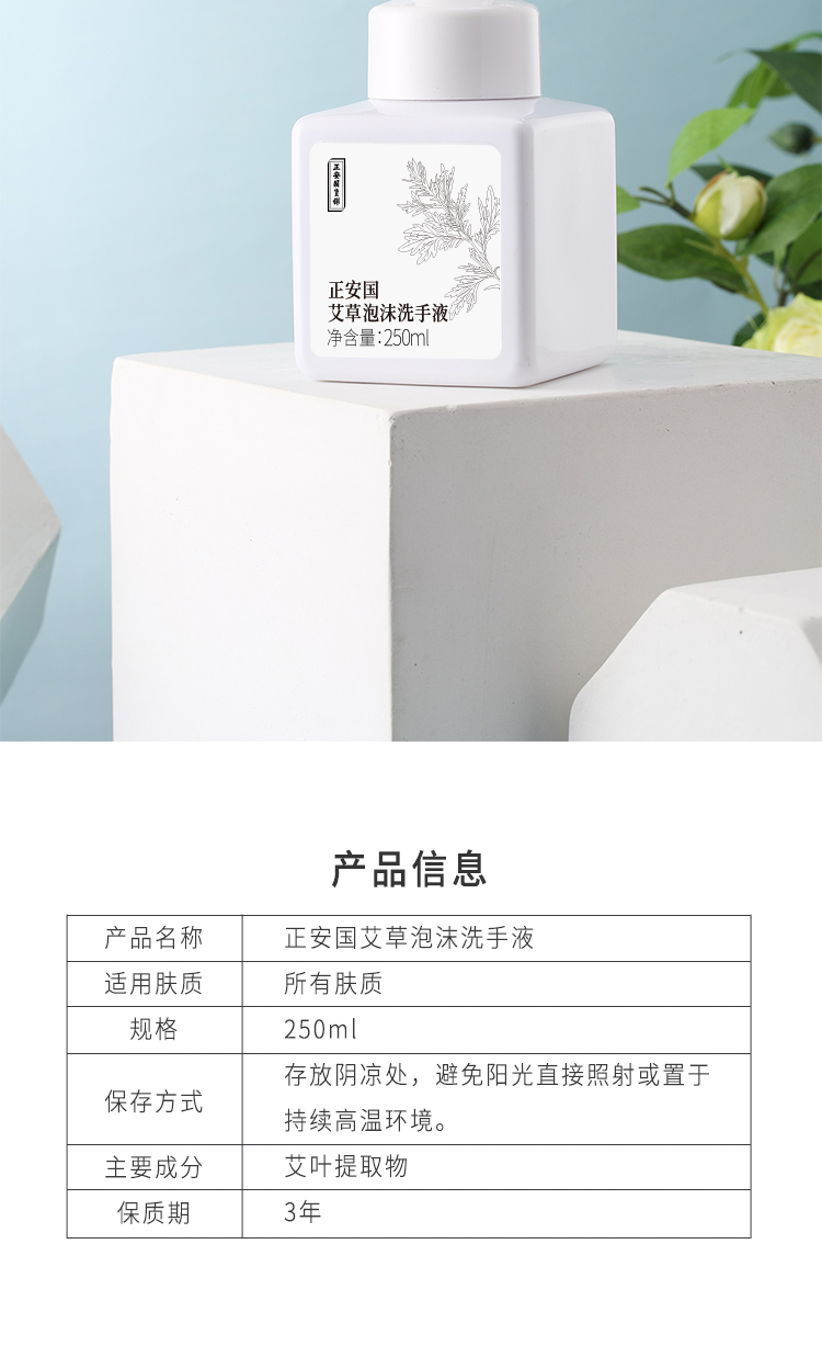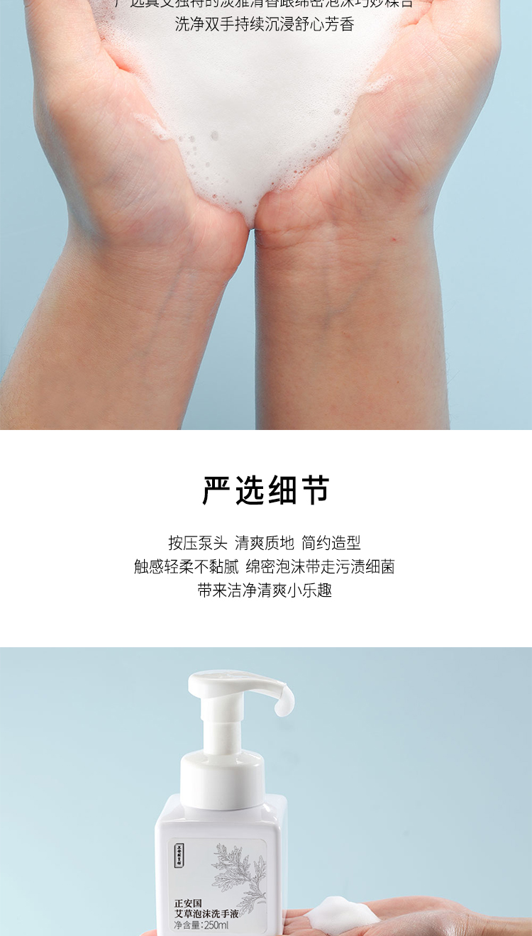 正安国货铺 艾草泡沫洗手液 清洁双手 家庭清洗好物 温和滋养亲肤艾草植萃精华 250ml