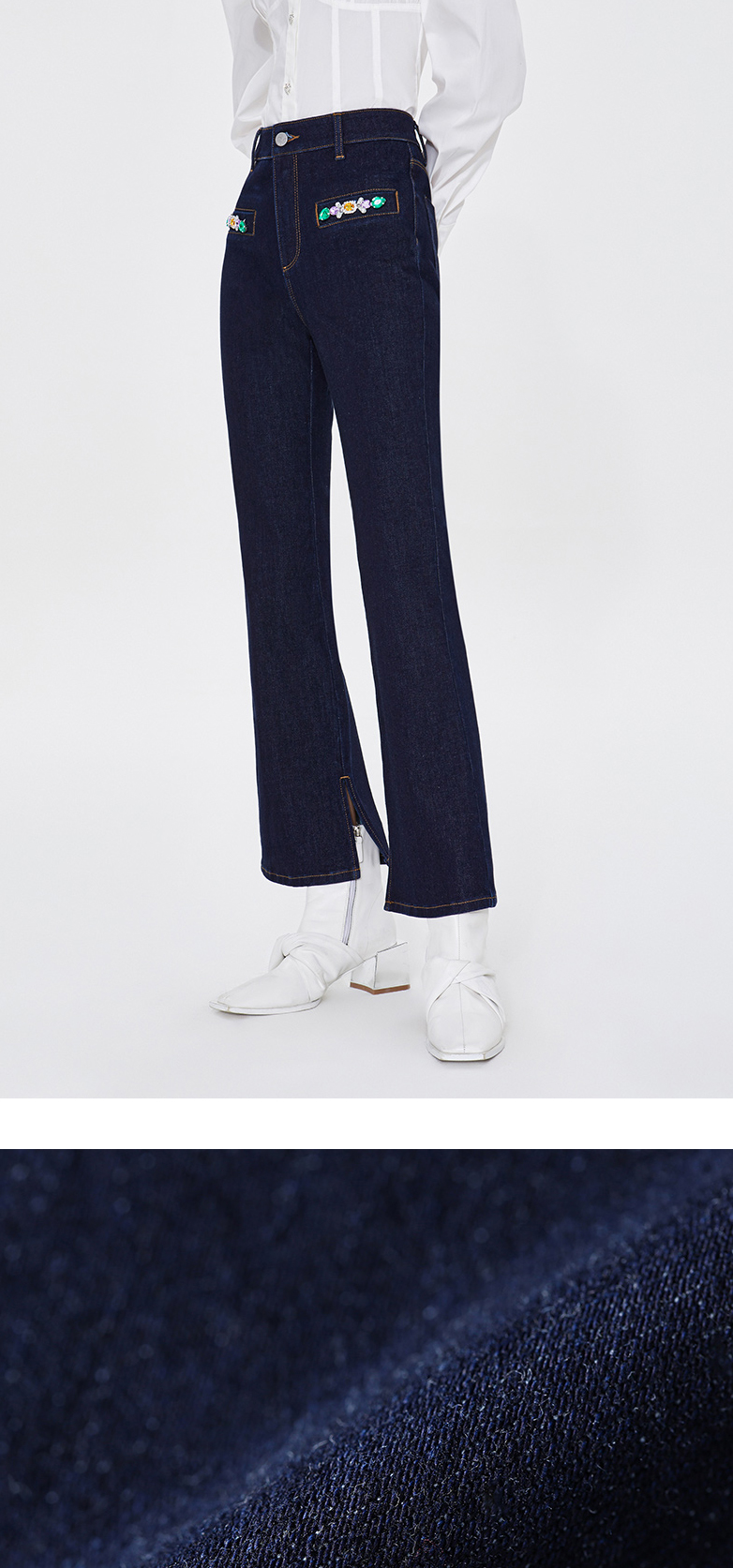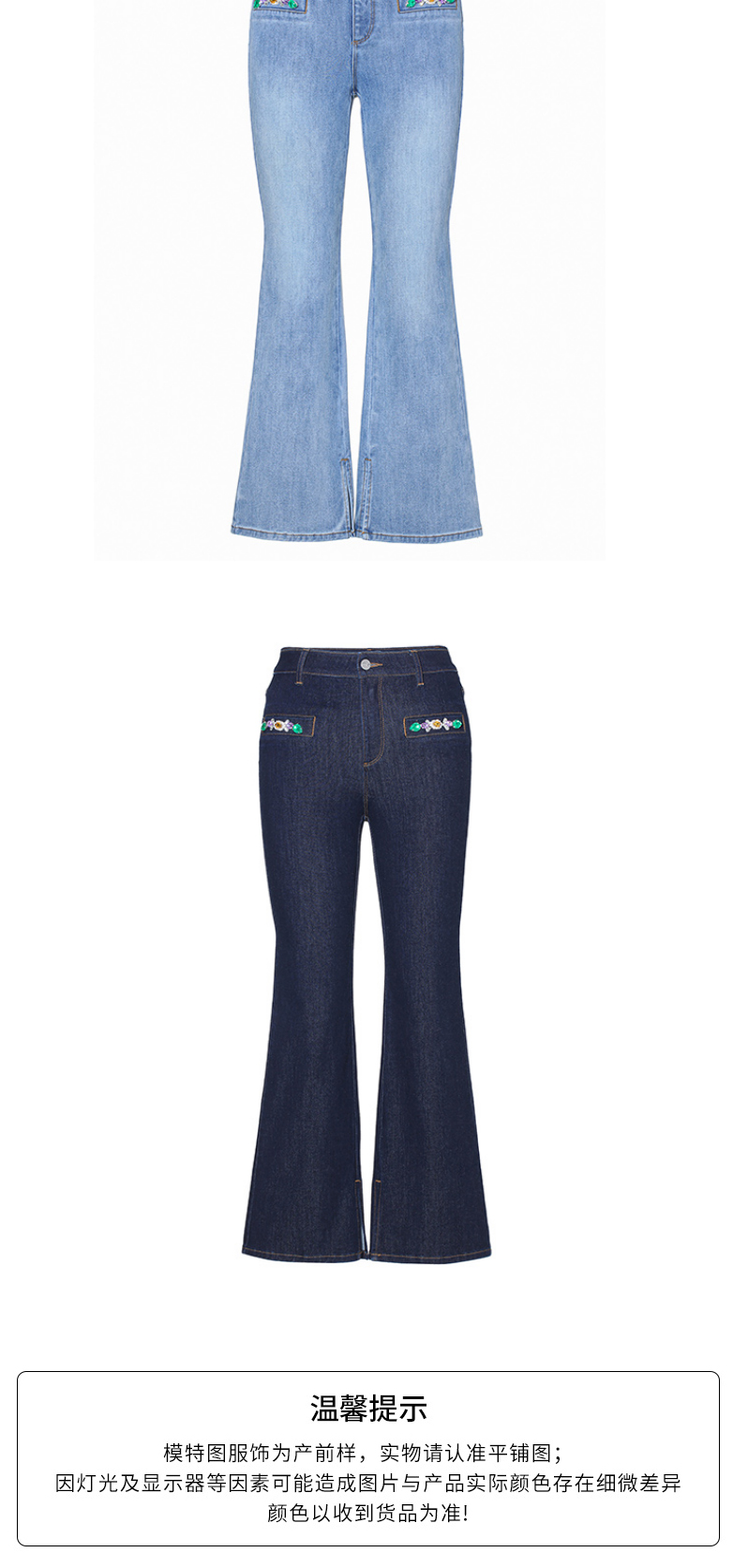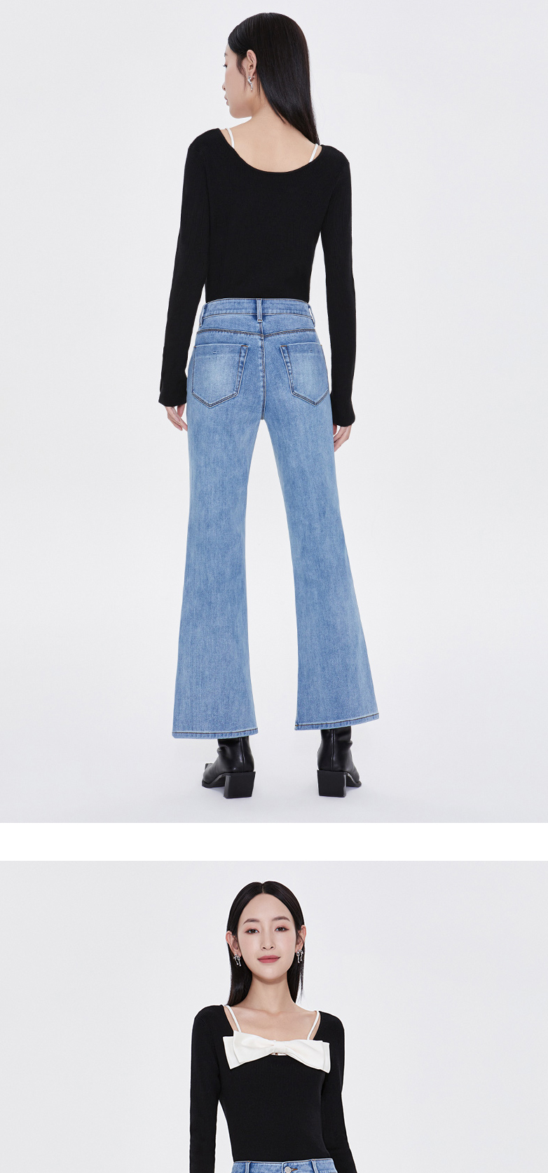 FIVE PLUS新款女春装四面弹牛仔长裤女洗水复古喇叭裤子开叉2WA1062170