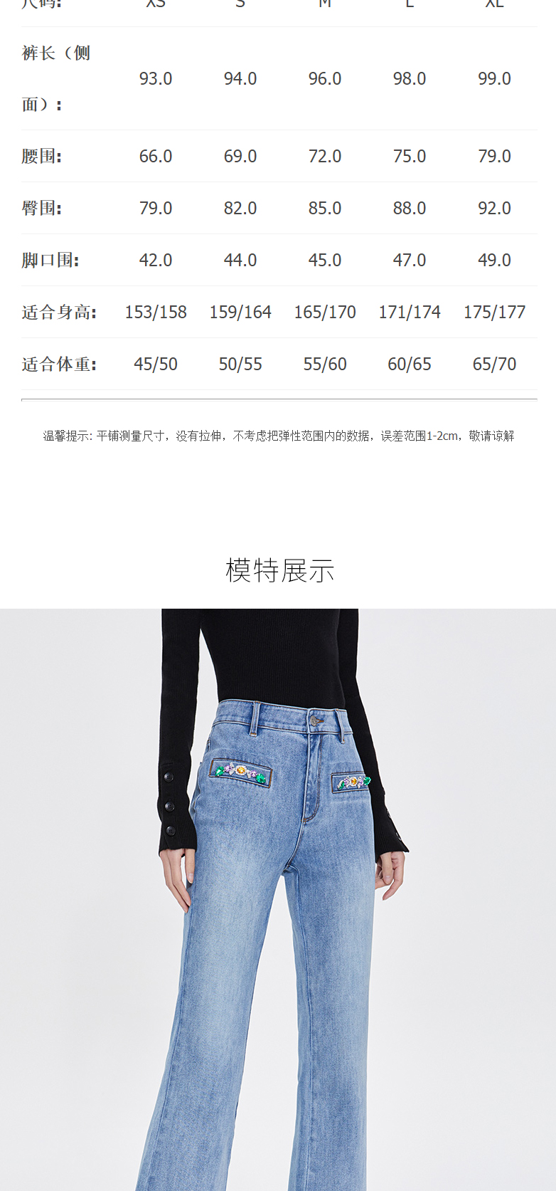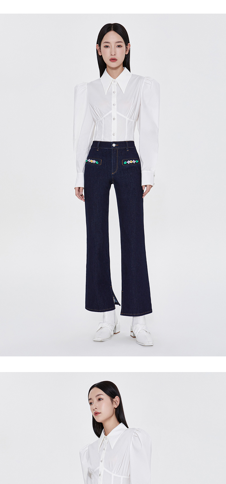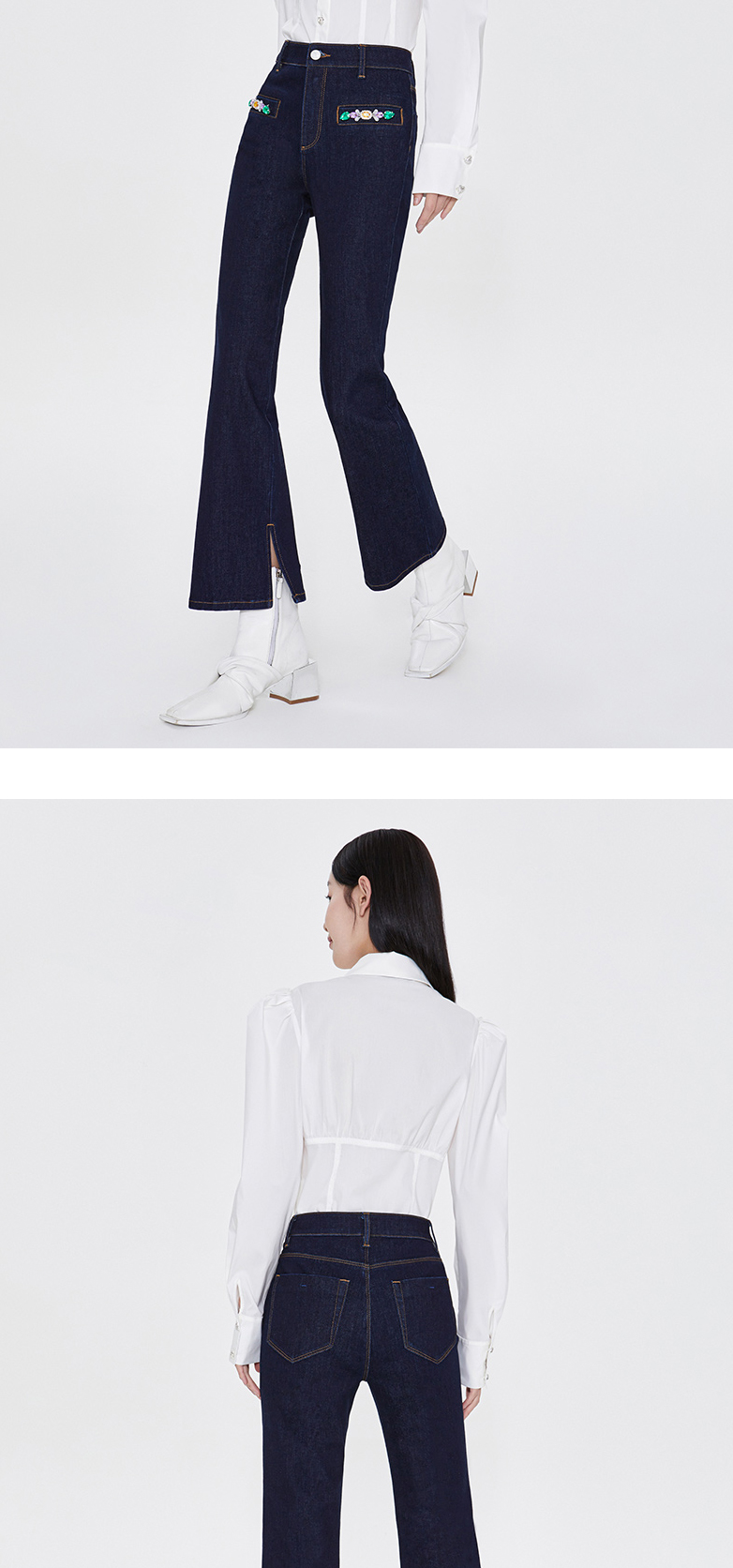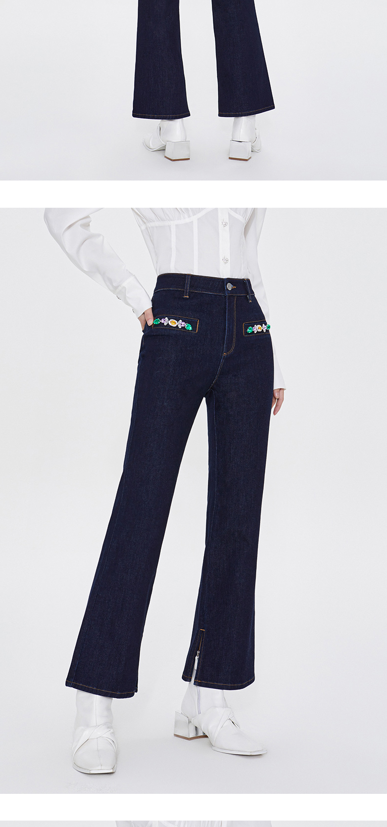 FIVE PLUS新款女春装四面弹牛仔长裤女洗水复古喇叭裤子开叉2WA1062170