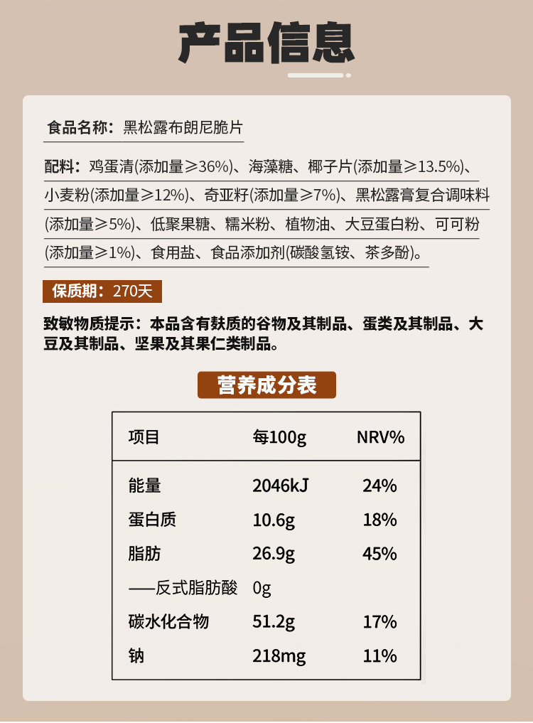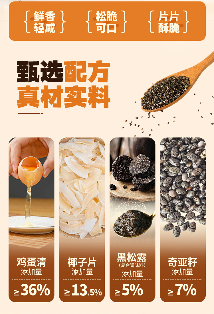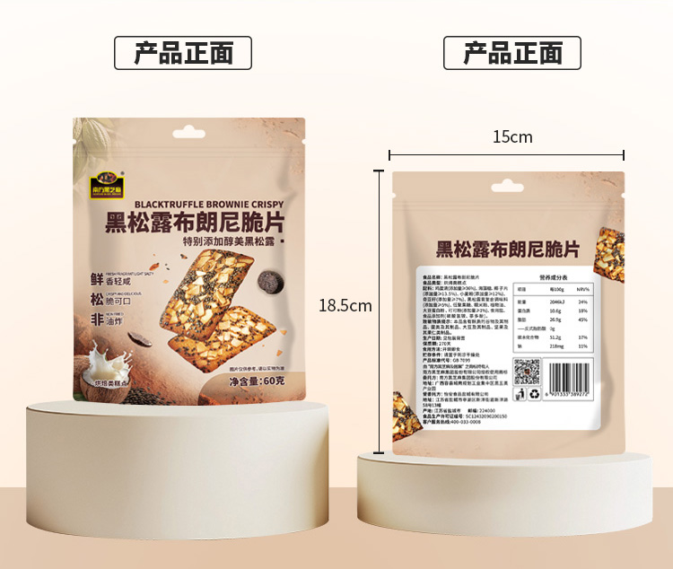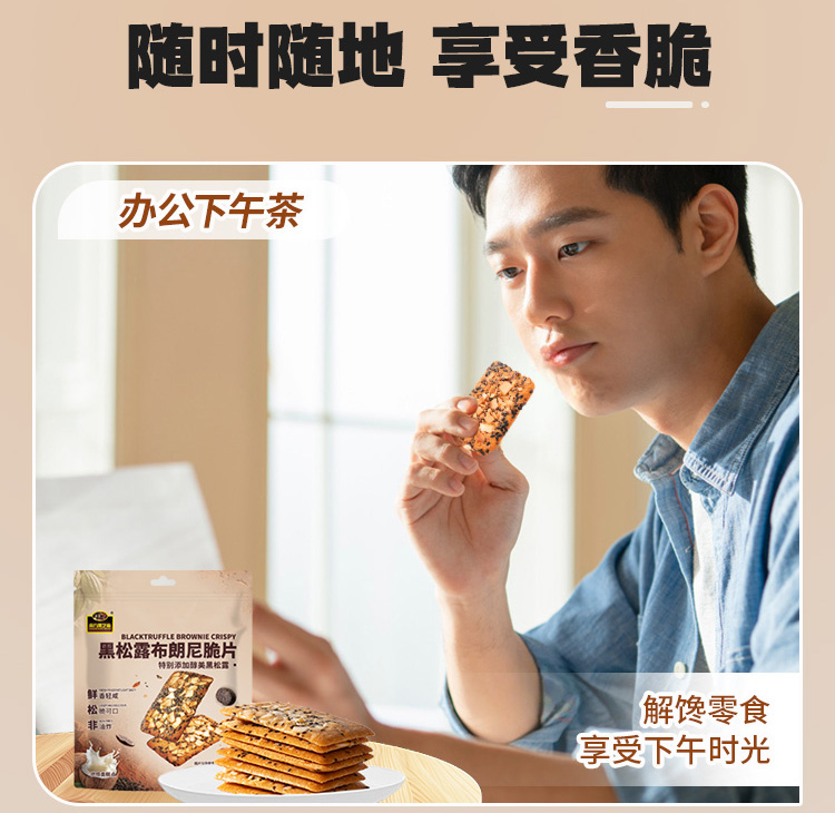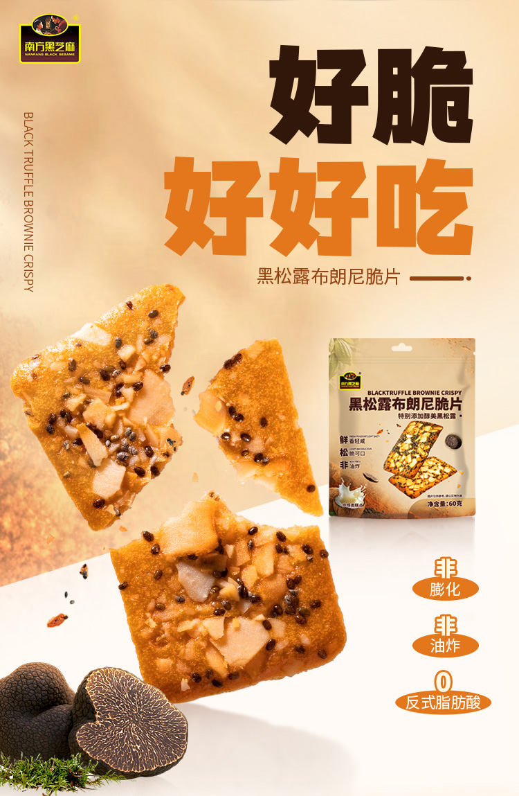 南方黑芝麻黑松露布朗尼脆片60g非油炸烘培休闲零食办公室酥脆饼干解馋下午茶