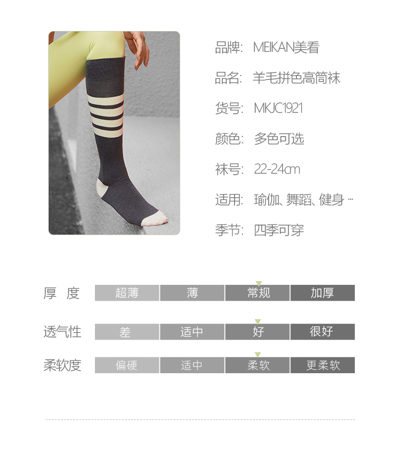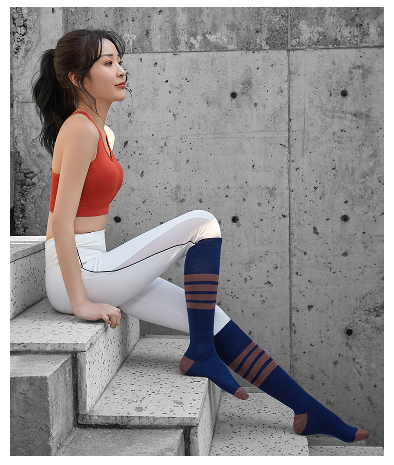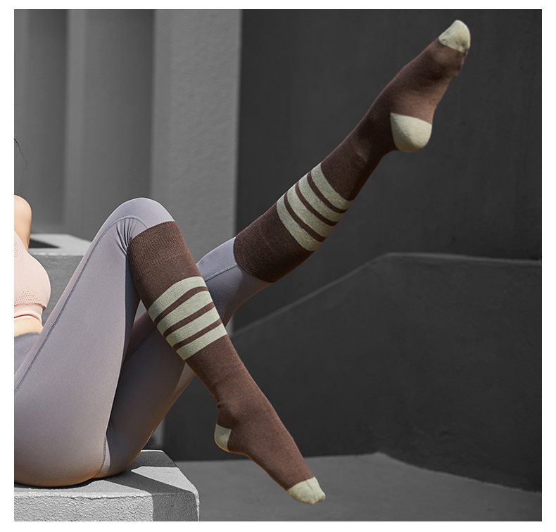 MEIKAN 2双装 瑜伽袜健身显瘦过膝条纹袜潮流百搭舞蹈运动长筒袜MKJC1921