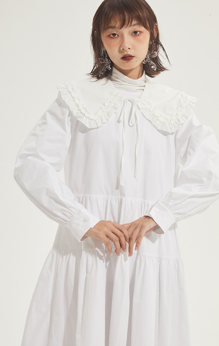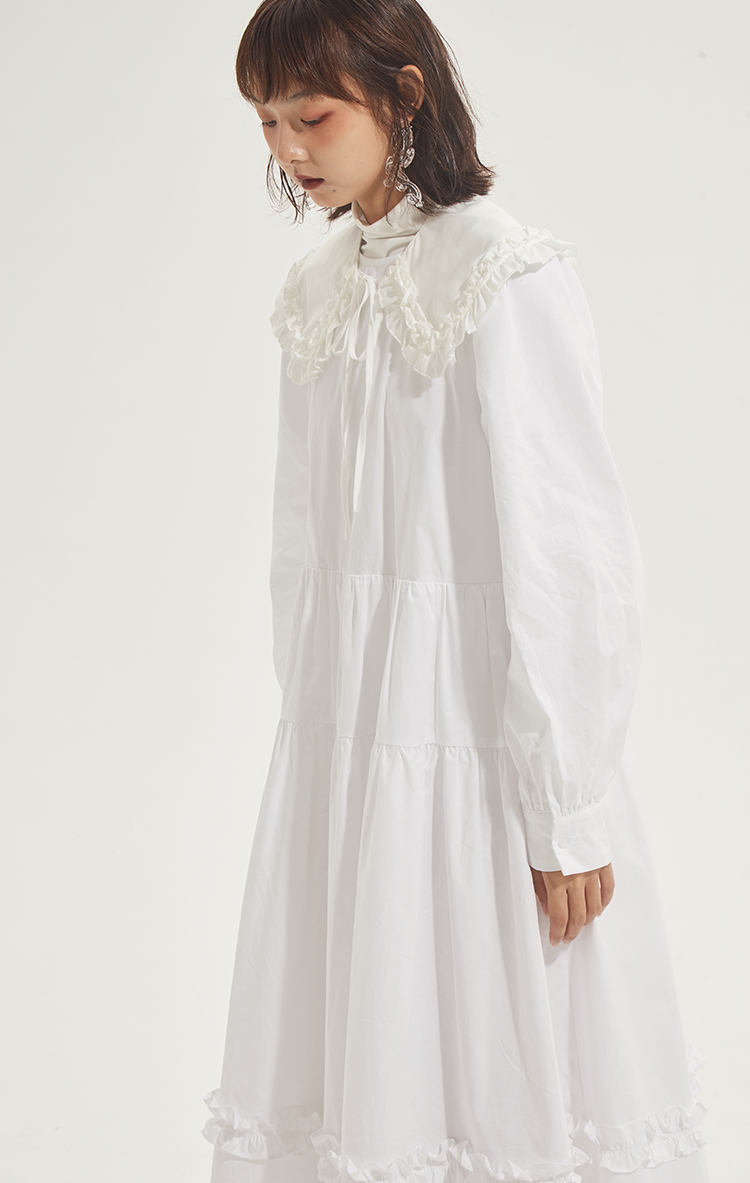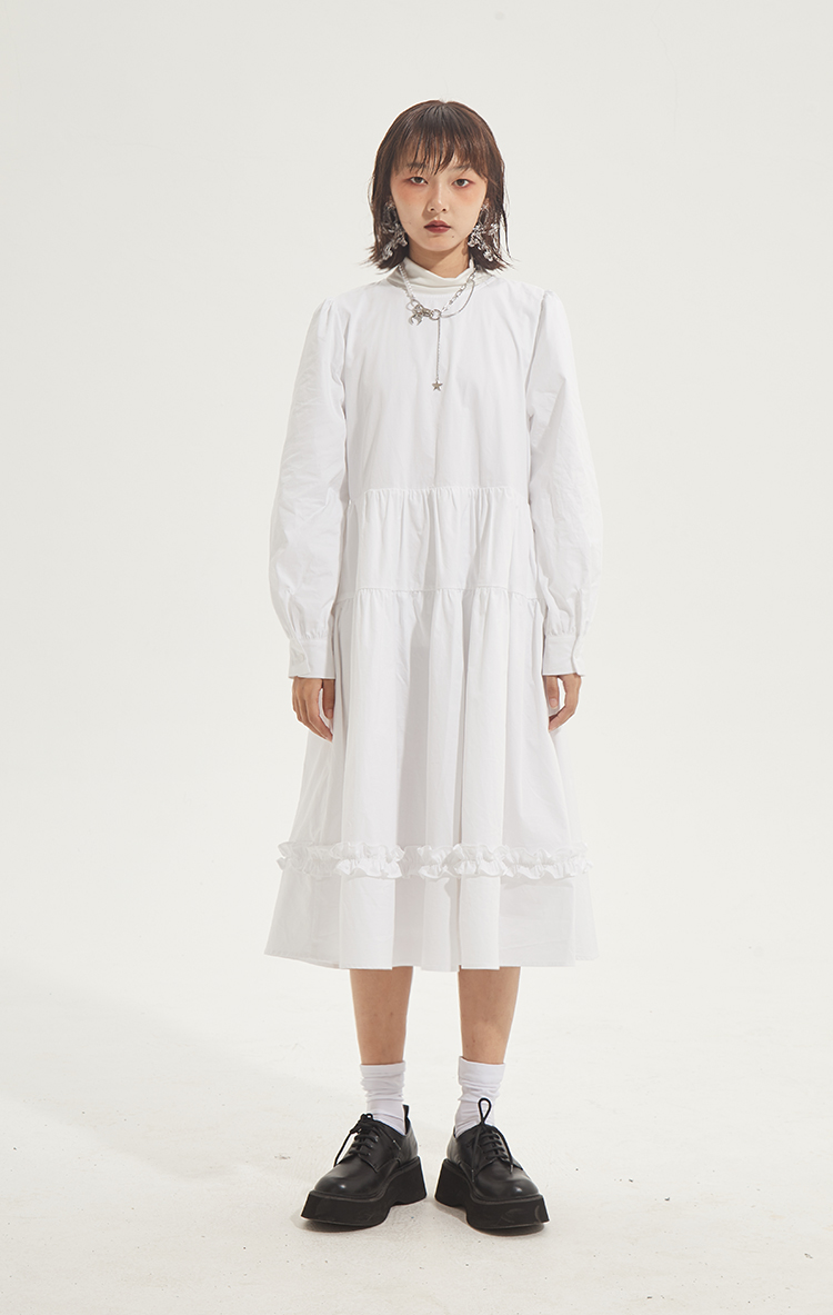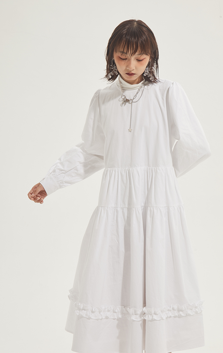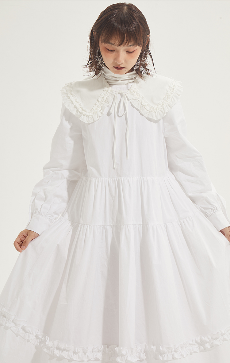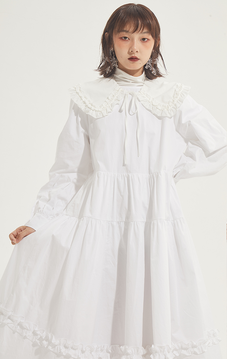 百搭白色荷叶边连衣裙在逃公主蓬蓬长裙秋冬装打底裙圣诞节