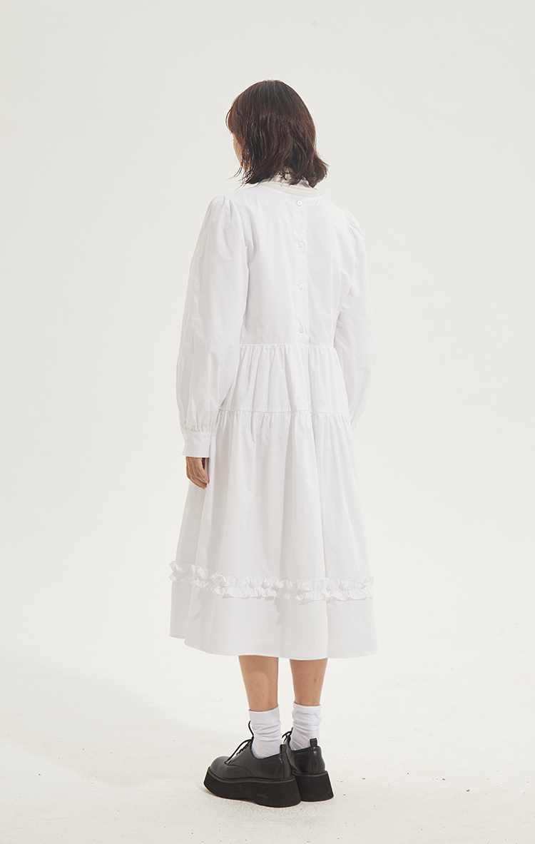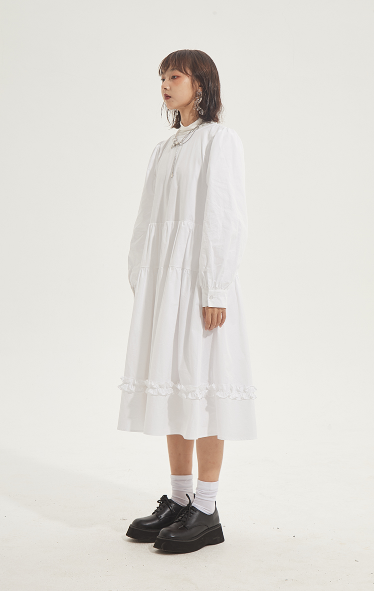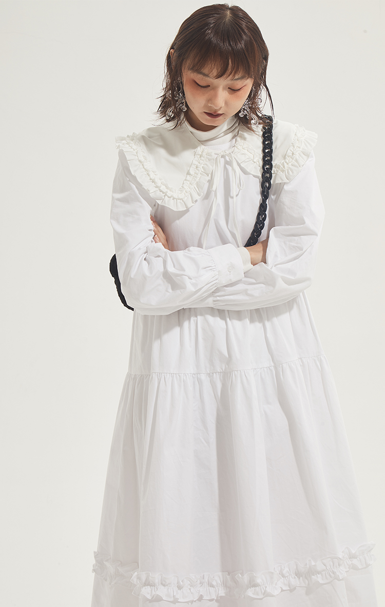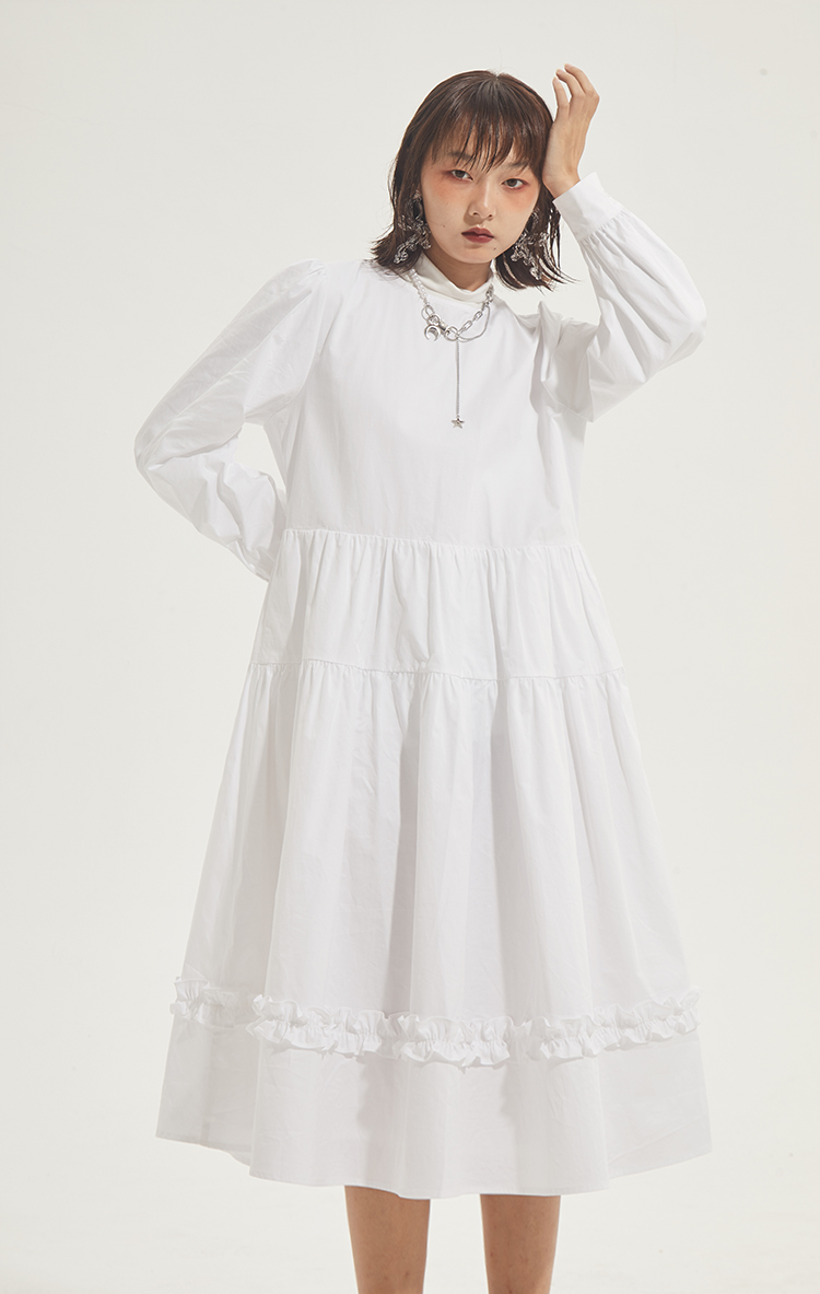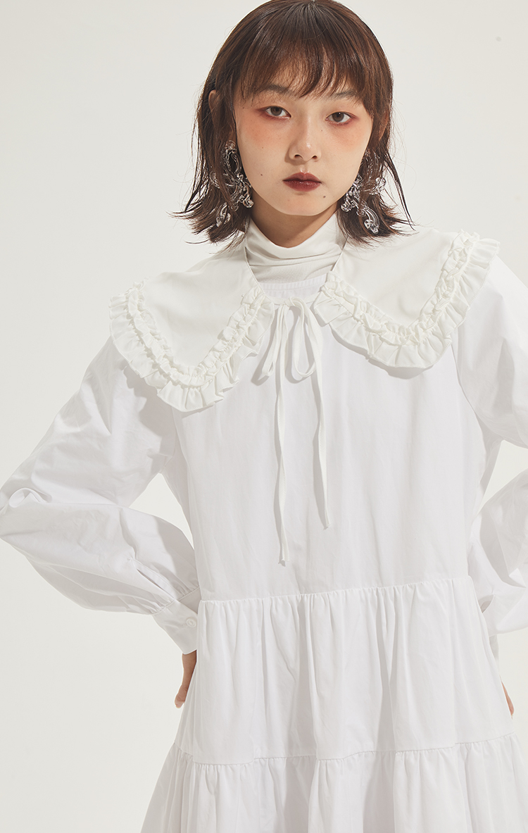百搭白色荷叶边连衣裙在逃公主蓬蓬长裙秋冬装打底裙圣诞节