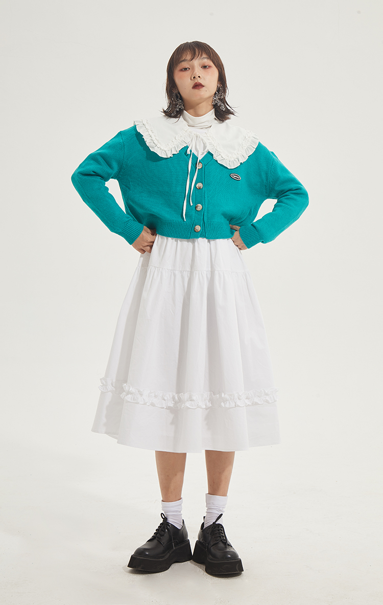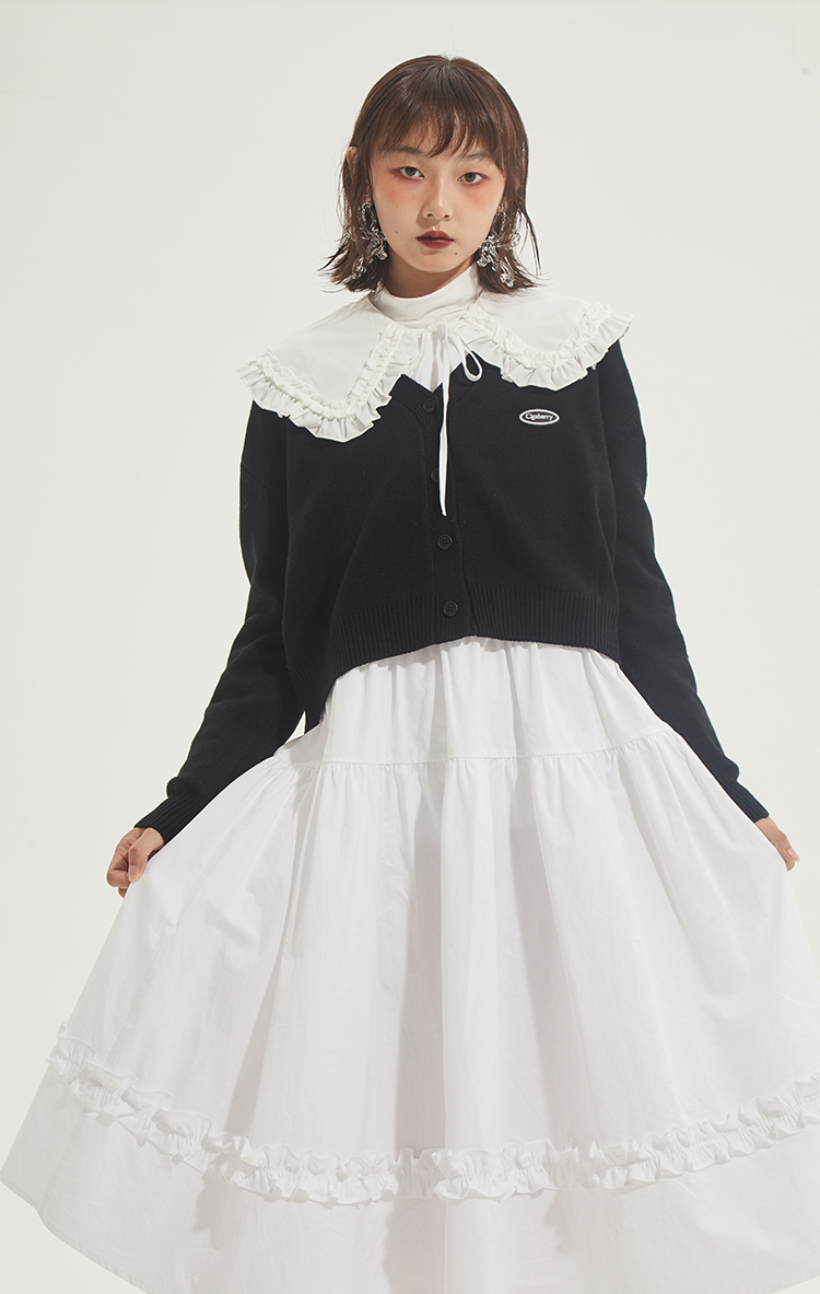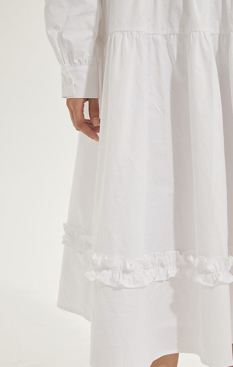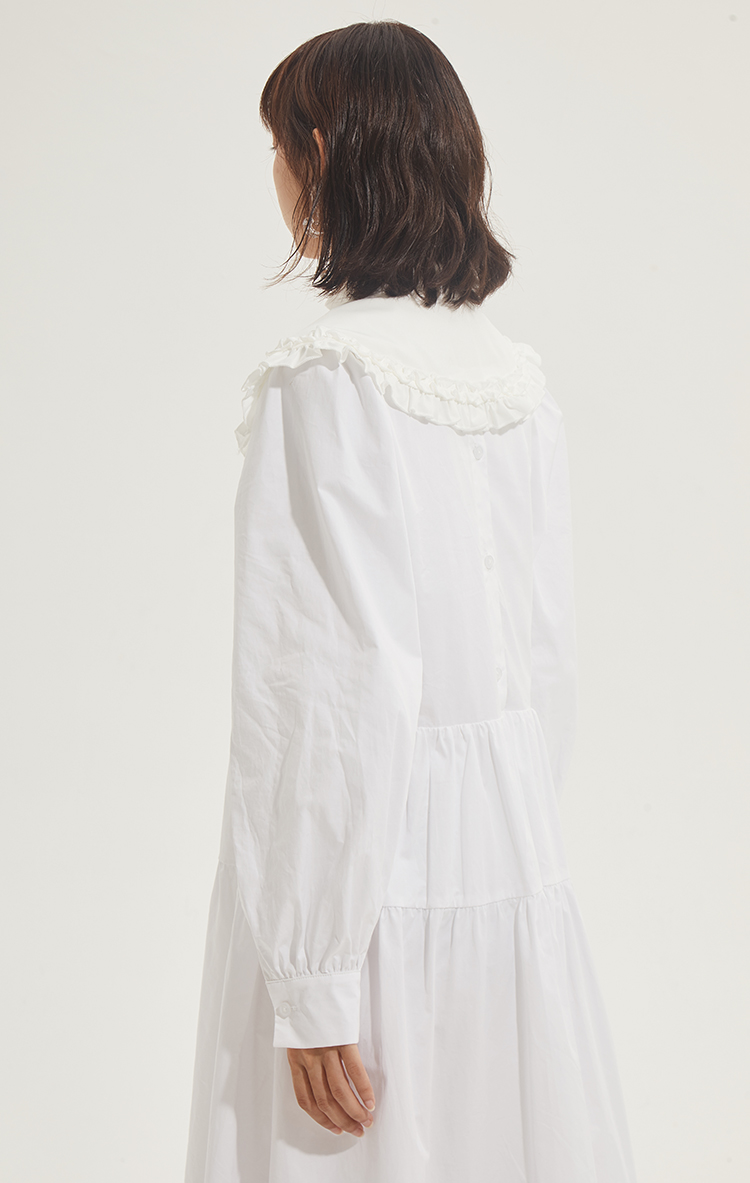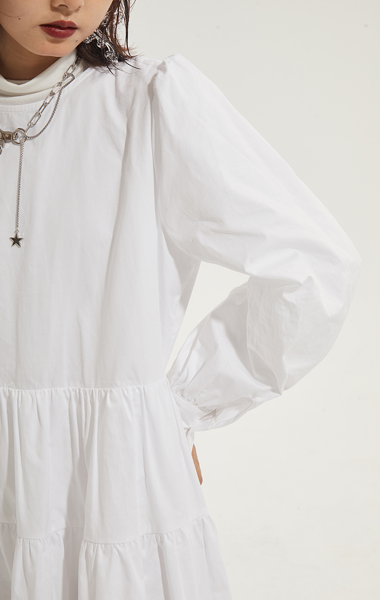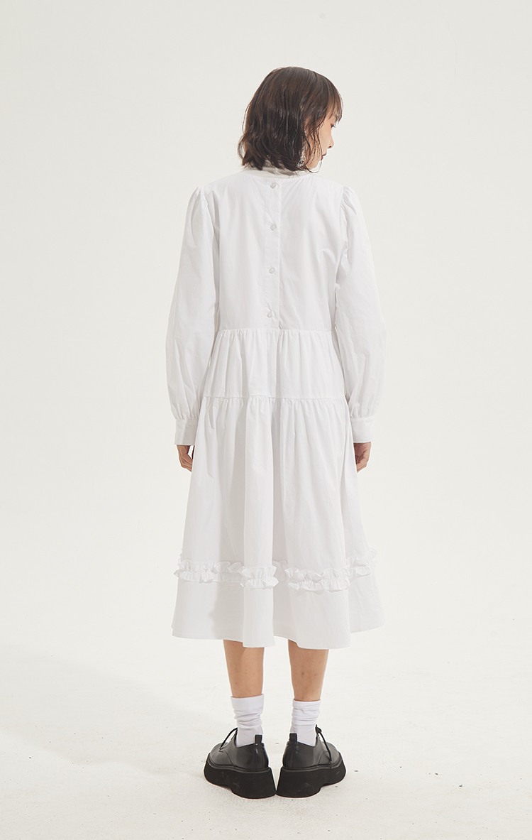 百搭白色荷叶边连衣裙在逃公主蓬蓬长裙秋冬装打底裙圣诞节