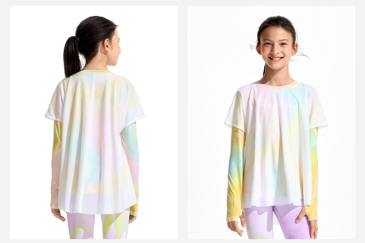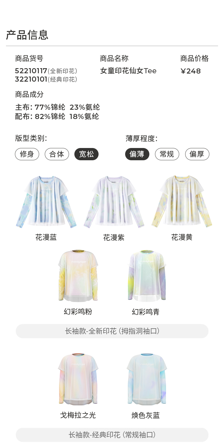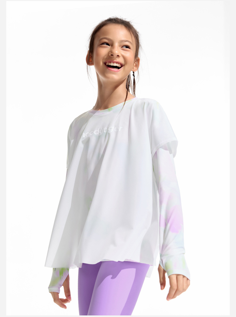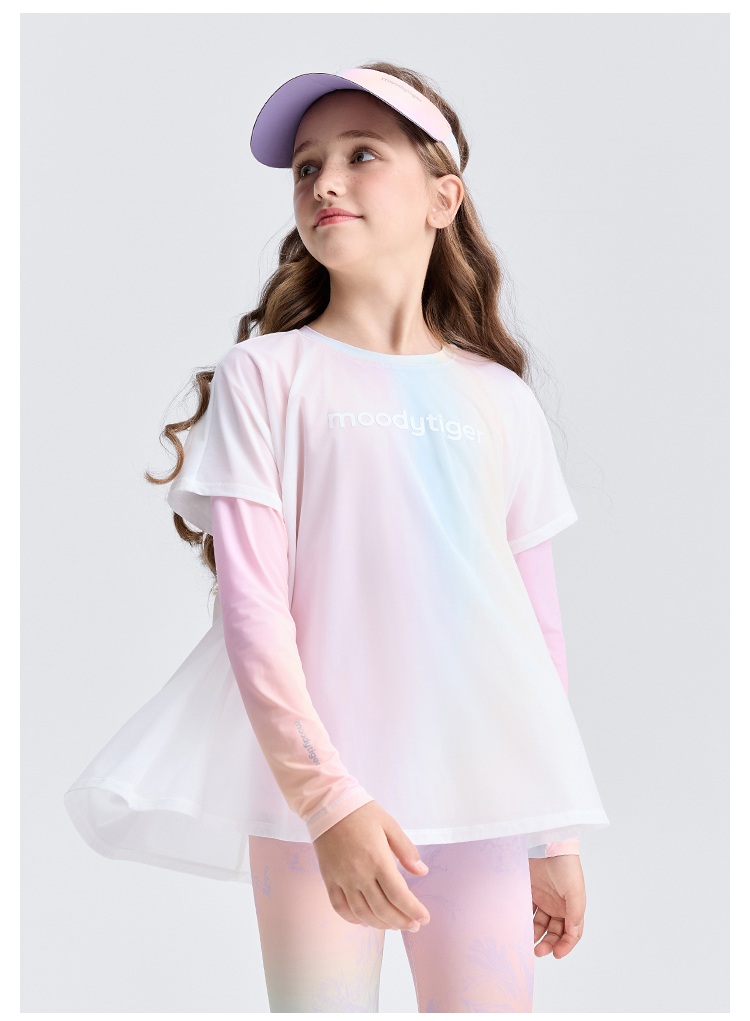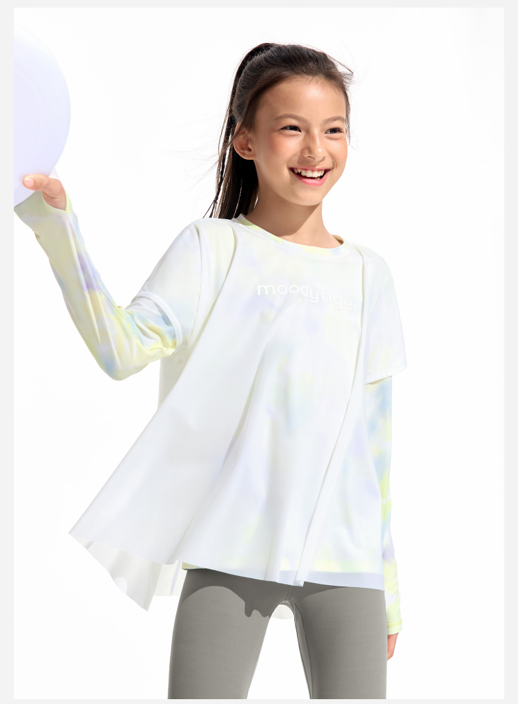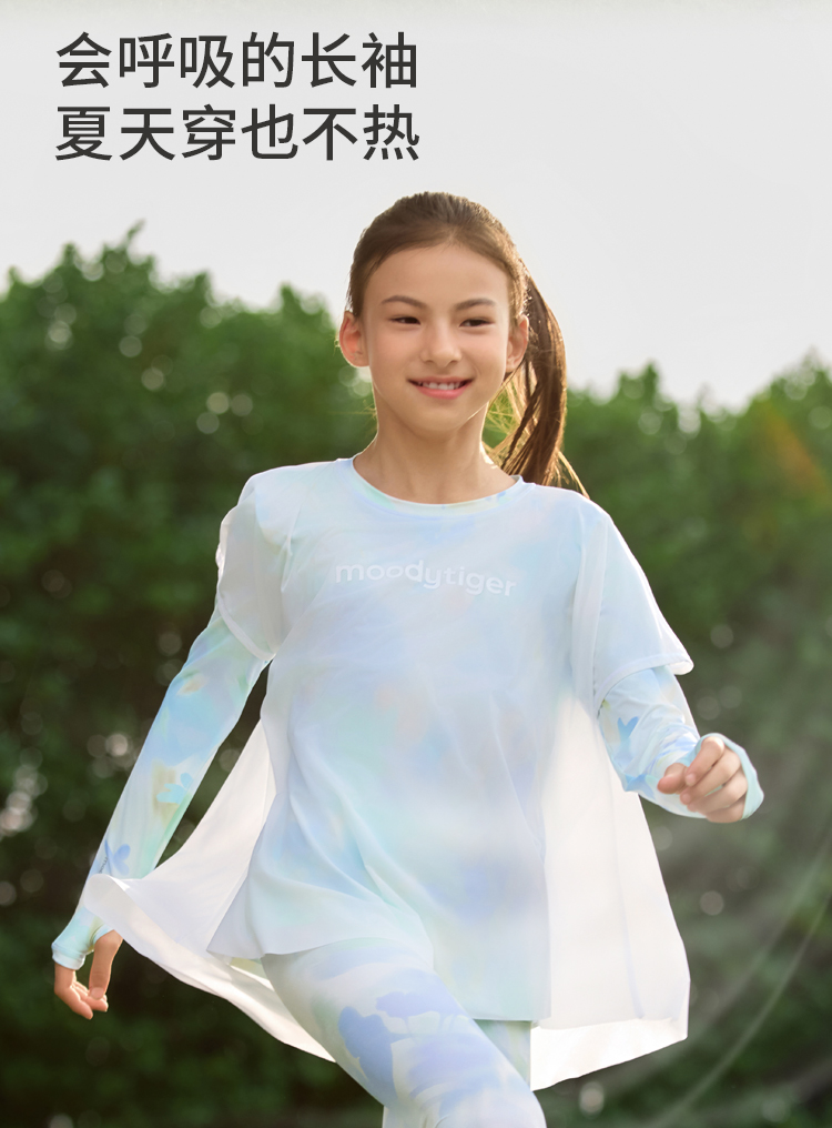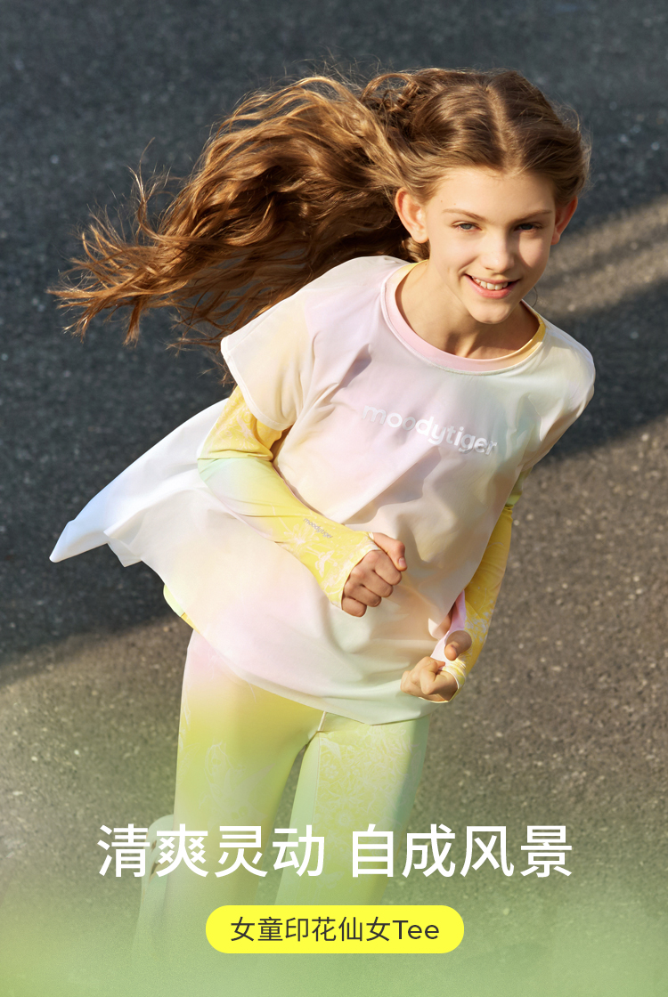 moodytiger25夏新款速干凉感清爽印花仙女T欧若风长袖T恤女童52210117【DR单】
