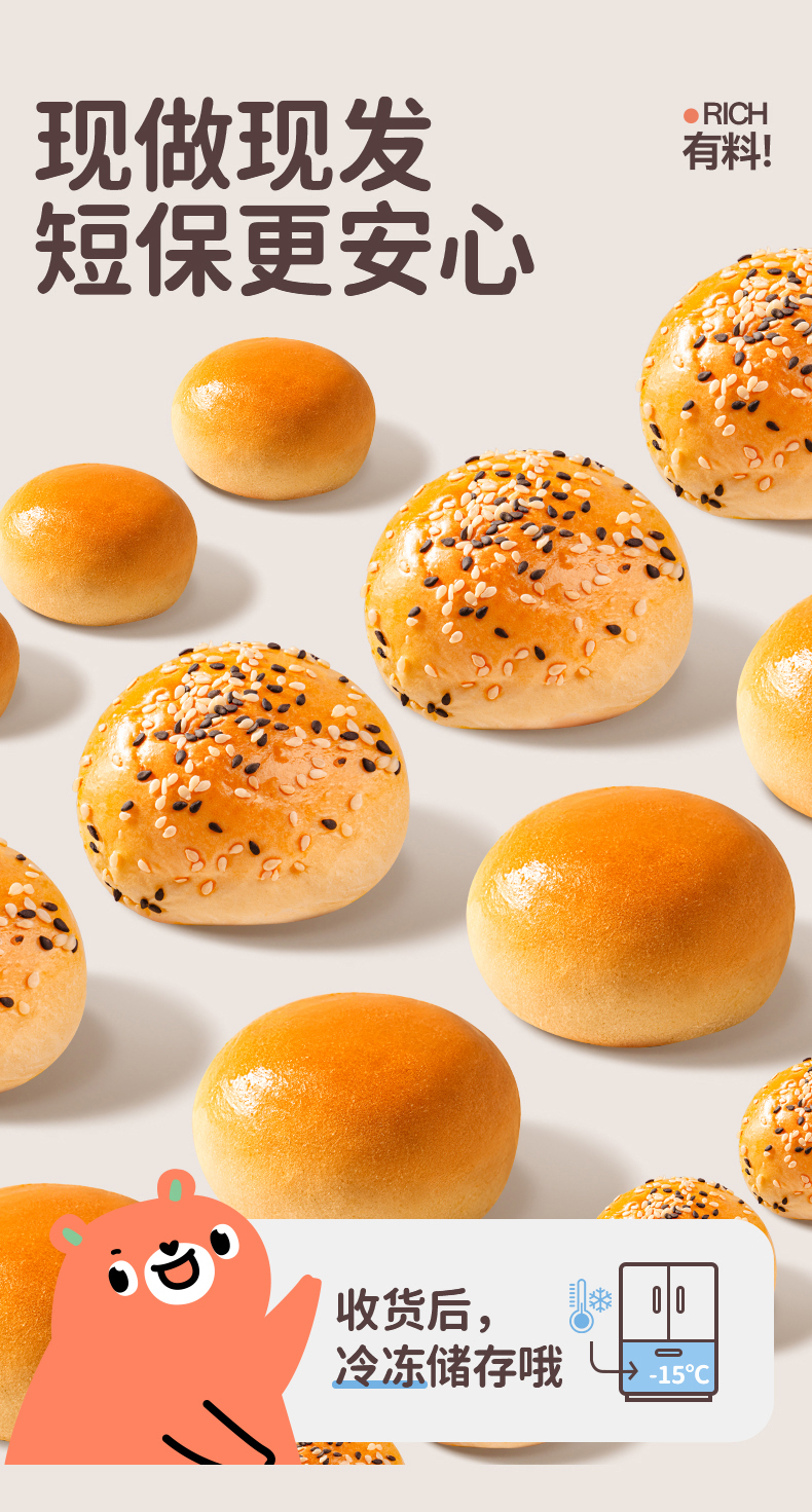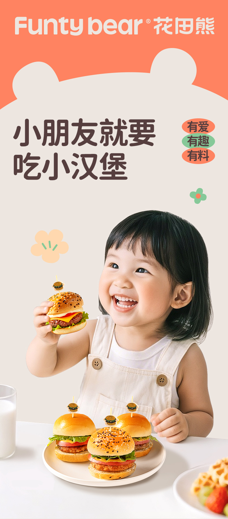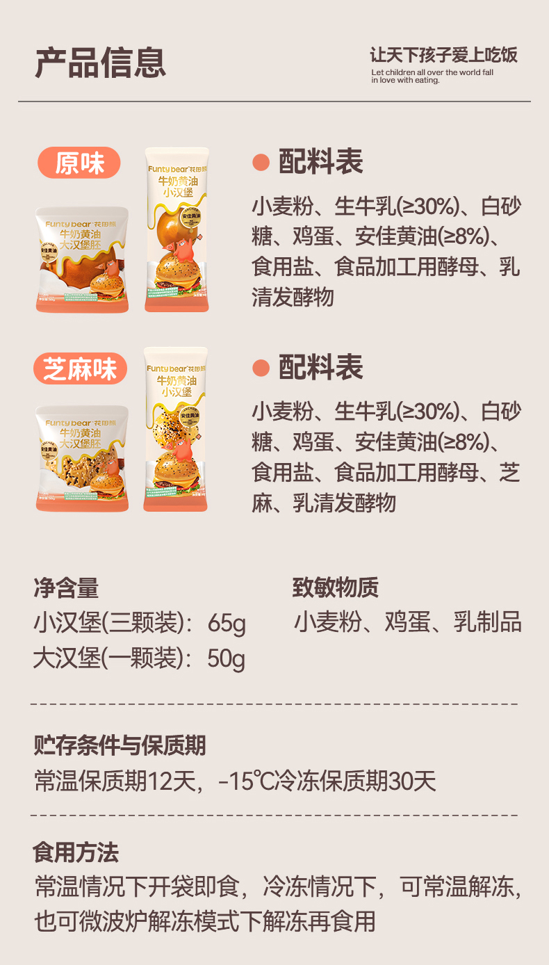 花田熊黄油小汉堡胚儿童营养早餐面包胚家用半成品迷你小汉堡包fs