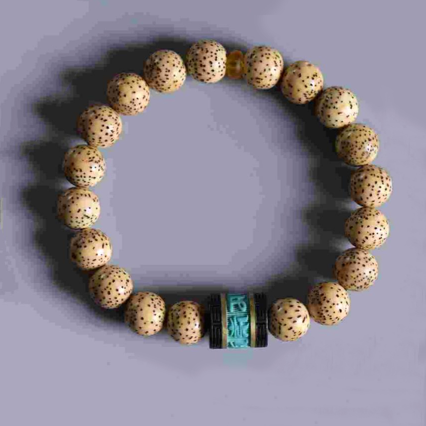 代绿松+铜鼓珠六字,