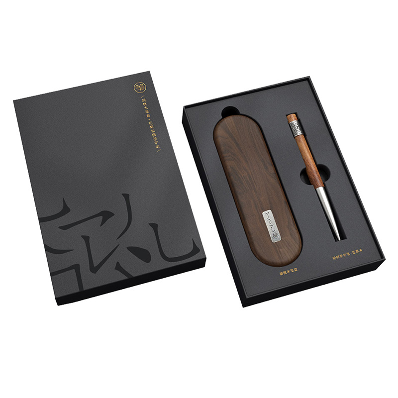 胡桃木笔盒+花梨木轮回签字笔