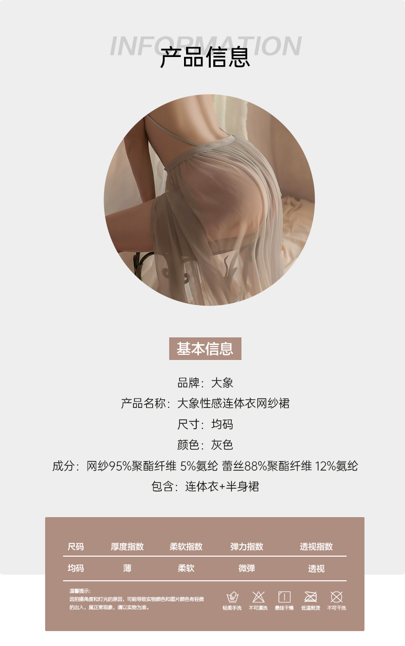 【双旦狂欢·钜惠来袭】【情趣内衣】大象性感连体网纱情趣内衣 免脱纱裙