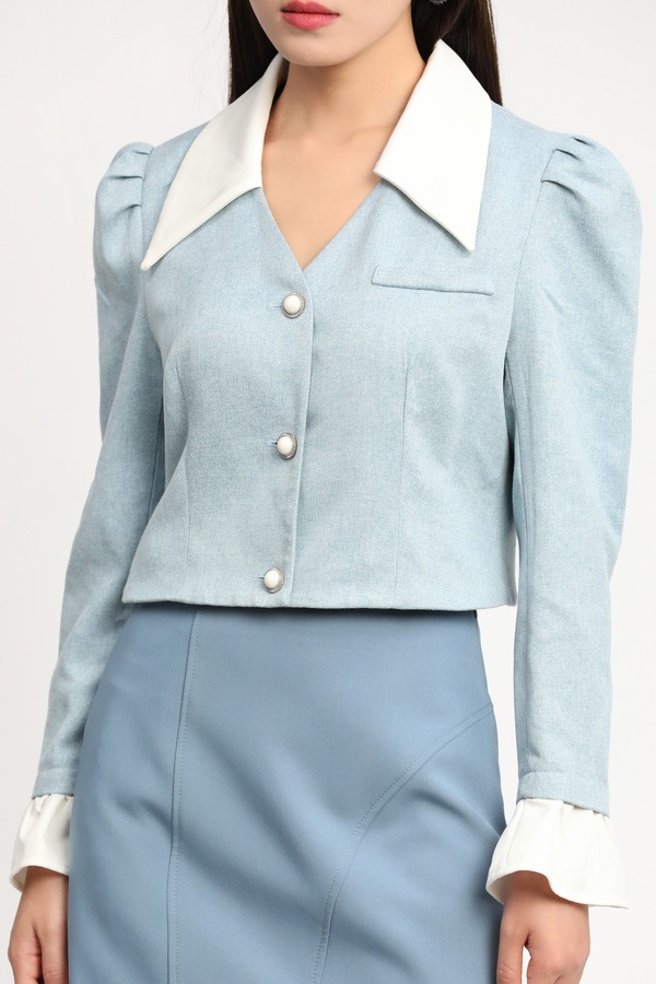 amadella 撞色领泡泡袖短外套 11119