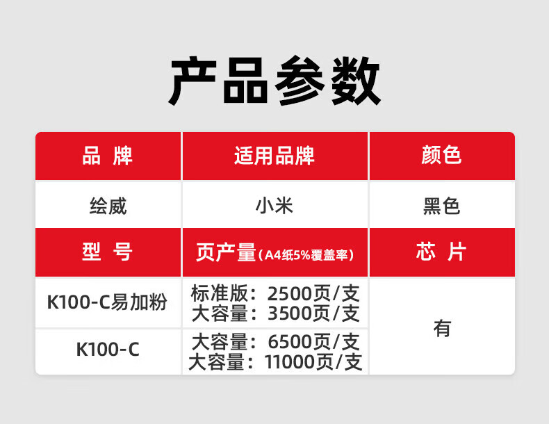 绘威适用小米K100-C粉盒 小米K100激光打印机粉盒 小米打印机k100硒鼓粉盒 k100-c碳粉墨盒 墨粉盒特大容量带芯片