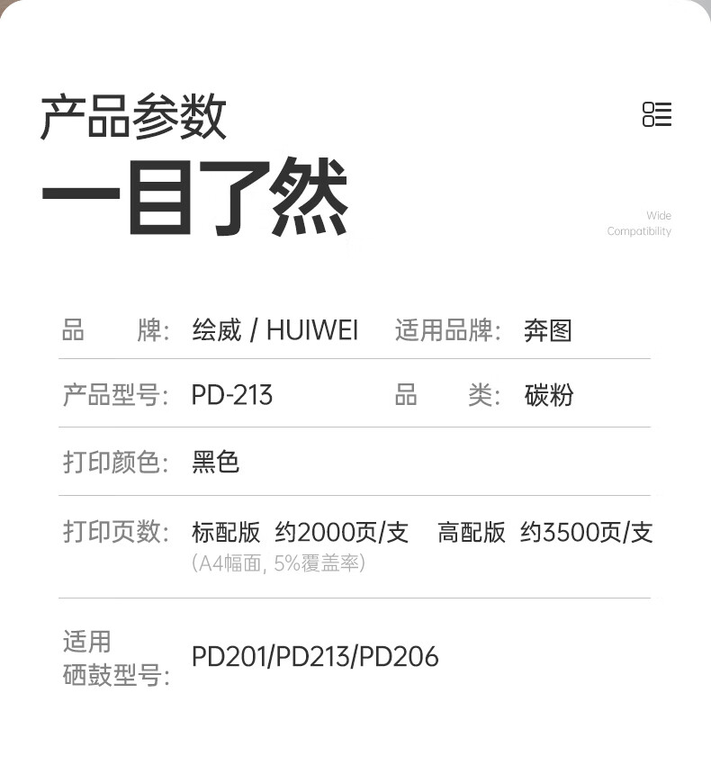 绘威适用奔图墨粉PD-213碳粉m6202w p2206w m6202nw p2206nw p2210w m6206w奔腾打印机硒鼓pd213/206/201/205碳粉