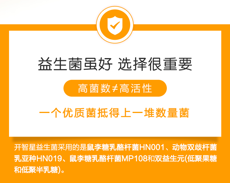 开智星益生菌固体饮料最新日期的,原来的配方中的lgg 菌株更换为MP108菌株了,菌含量不变。其他无变化。