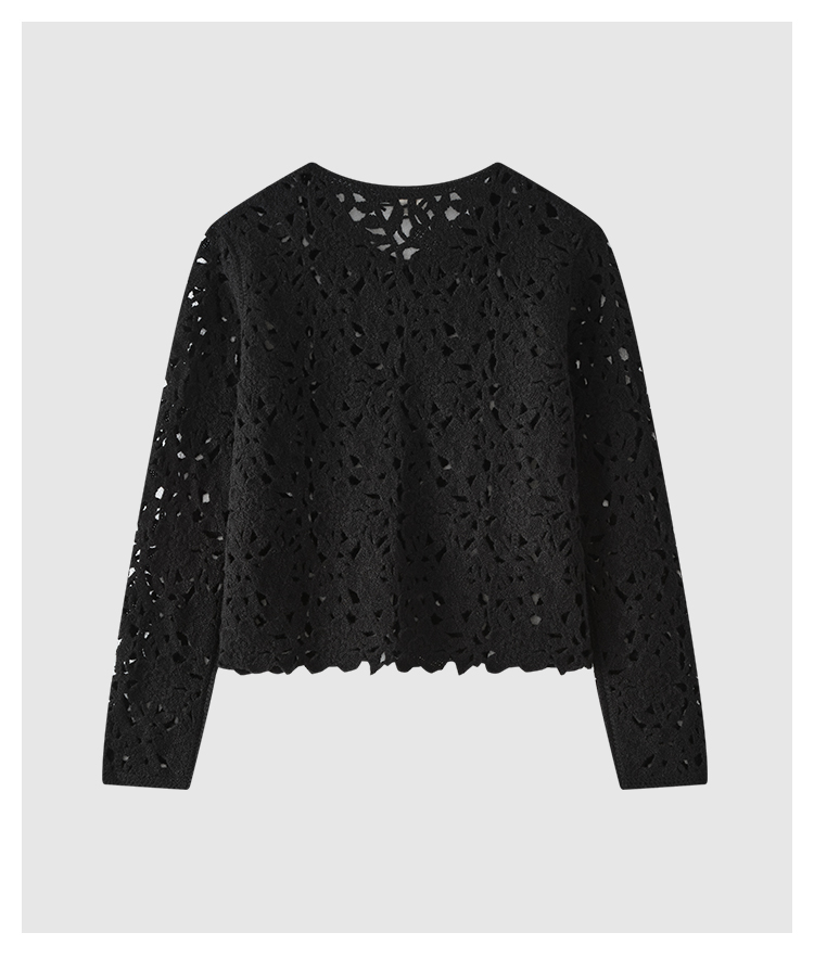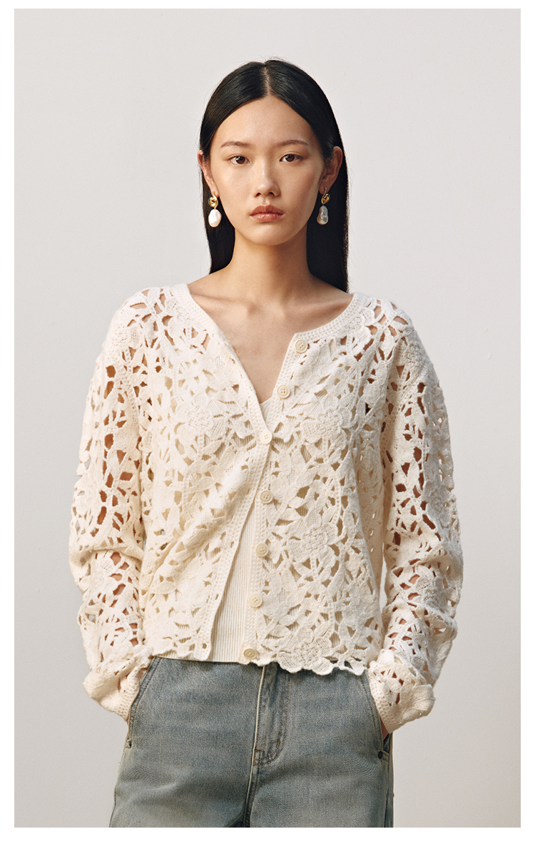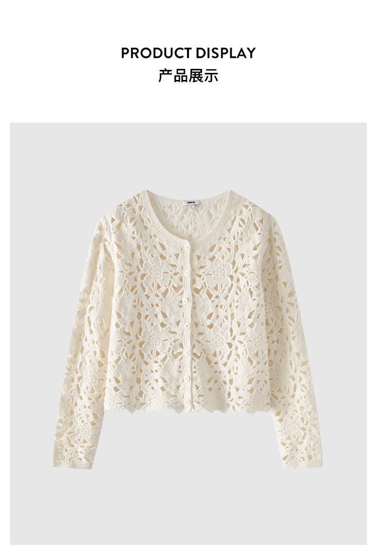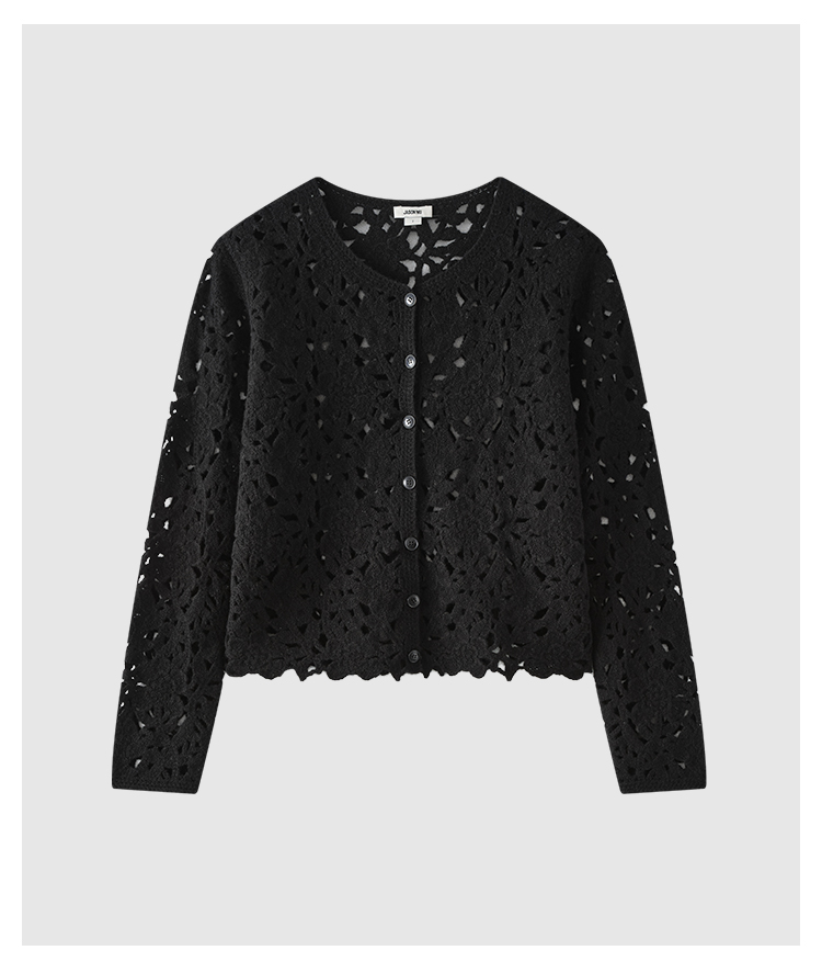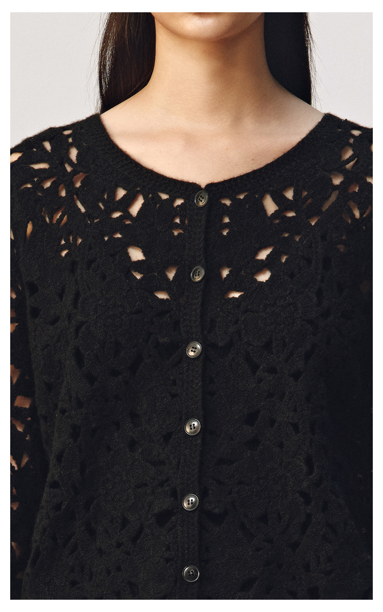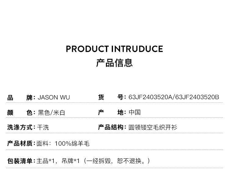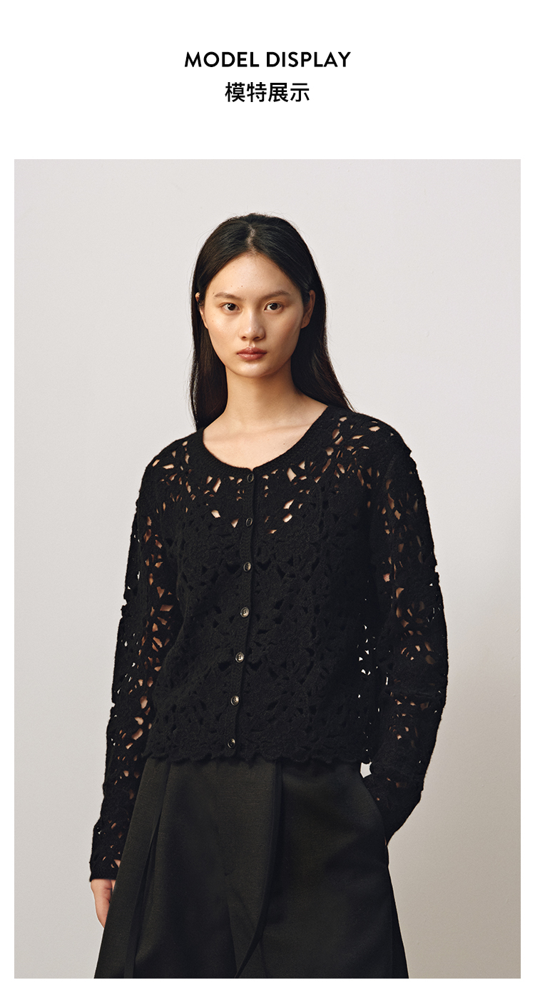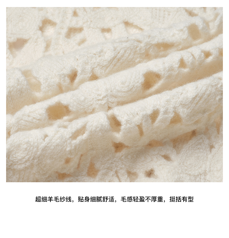 【JASON WU】(多色)秋冬新款花朵镂空手钩花卉设计绵羊毛短上衣针织开衫女