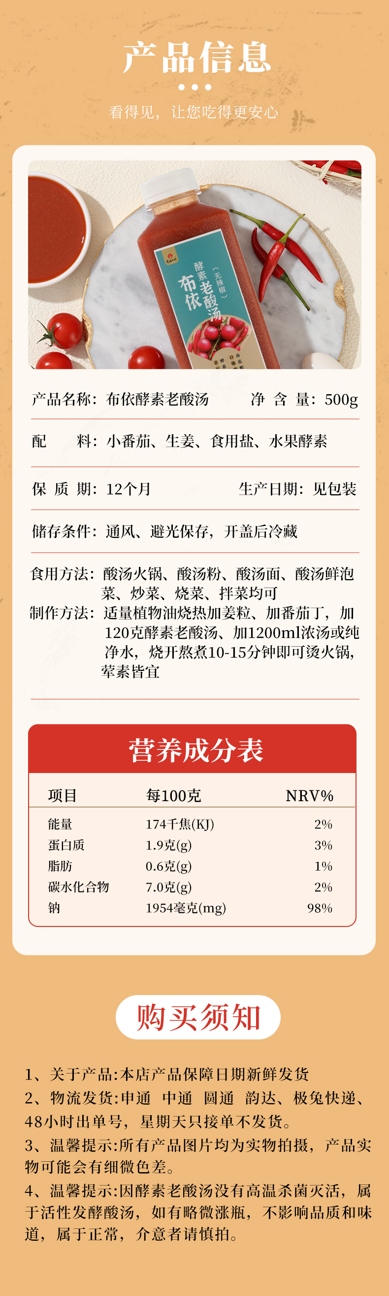 布依酵素老酸汤 老坛发酵酵素保鲜不高温灭活500g/瓶【京东快递送货上门】