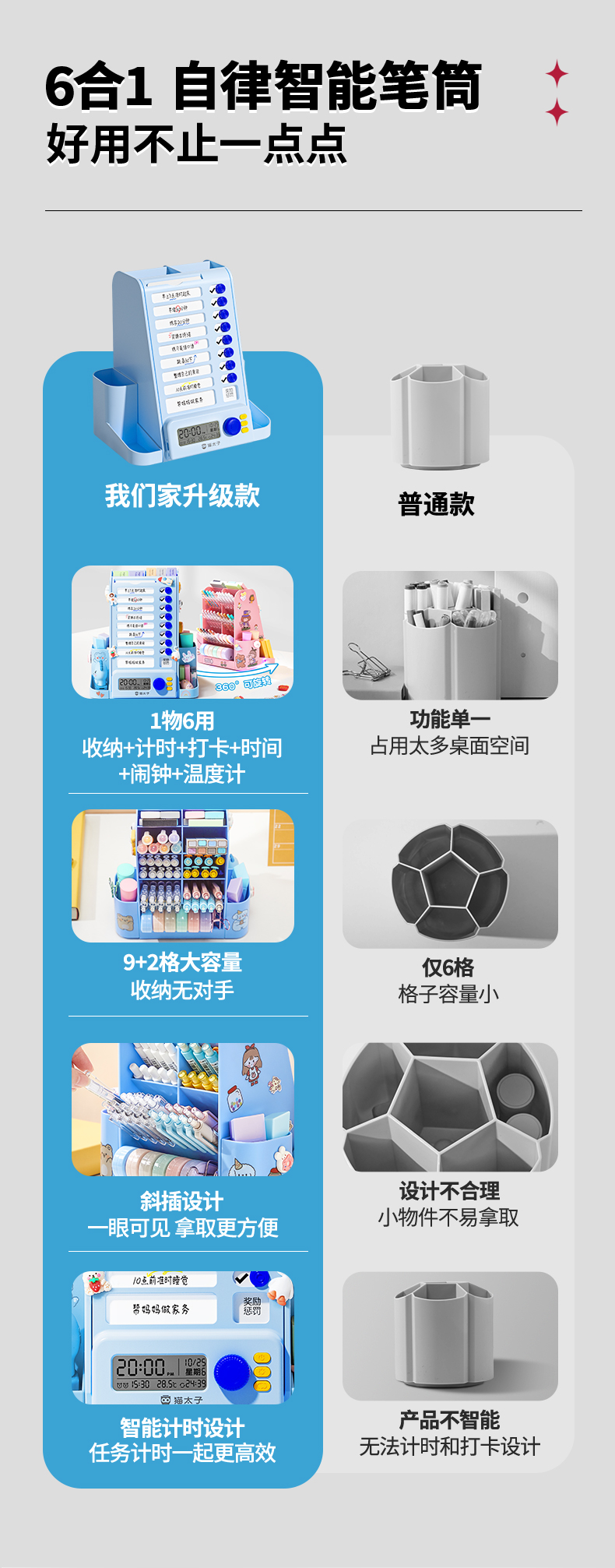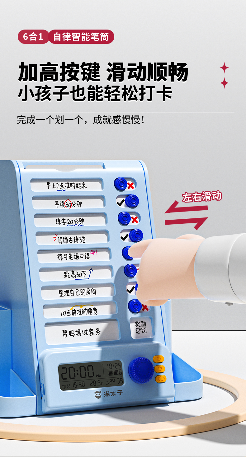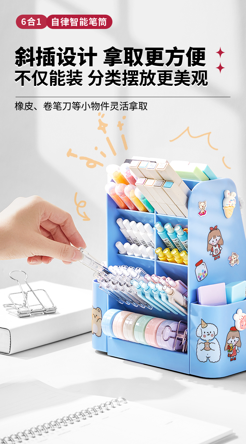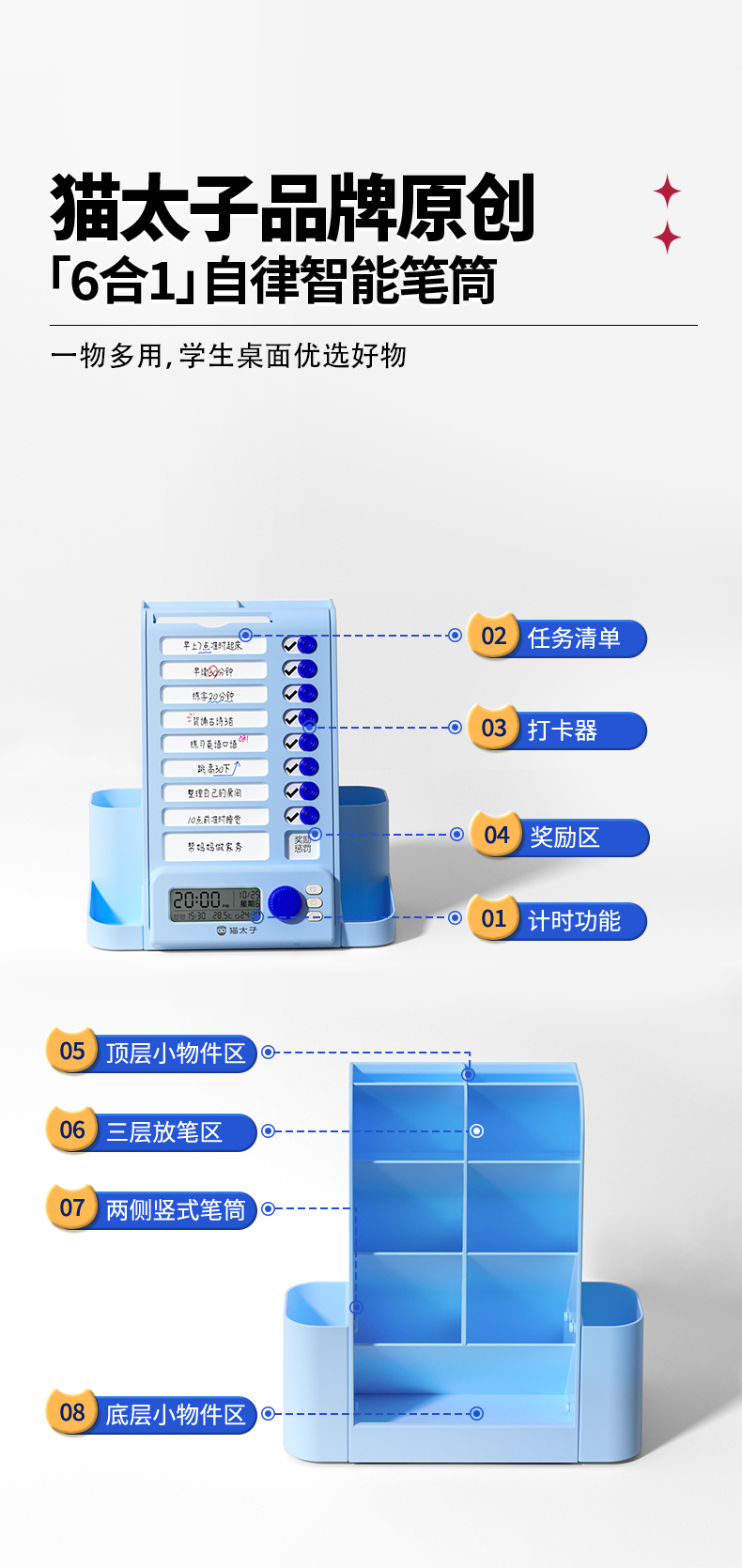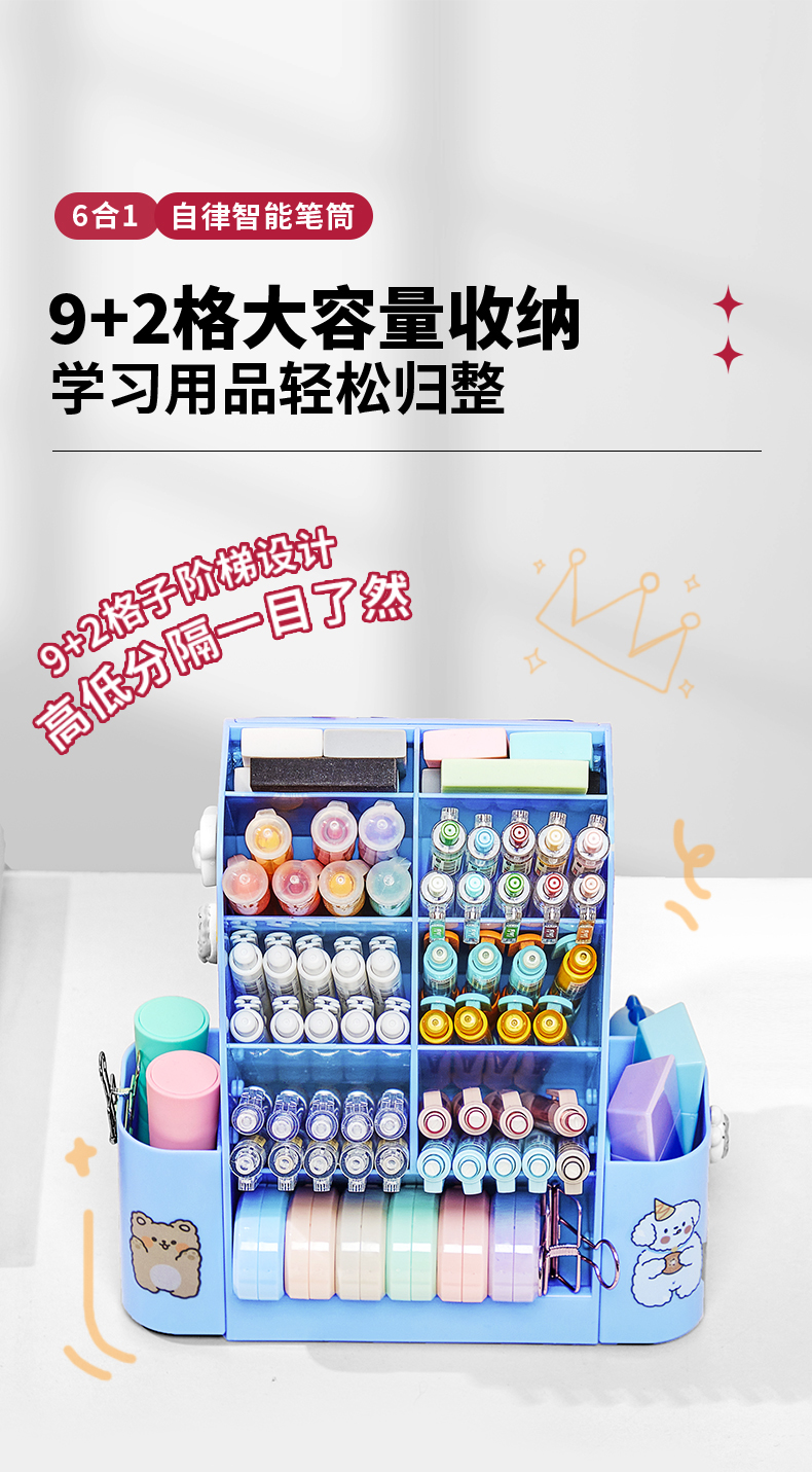 猫太子自律旋转笔筒大容量学生桌面多功能收纳笔盒儿童男女孩文具超大笔桶打卡器创意高颜值轻奢高级感暑假