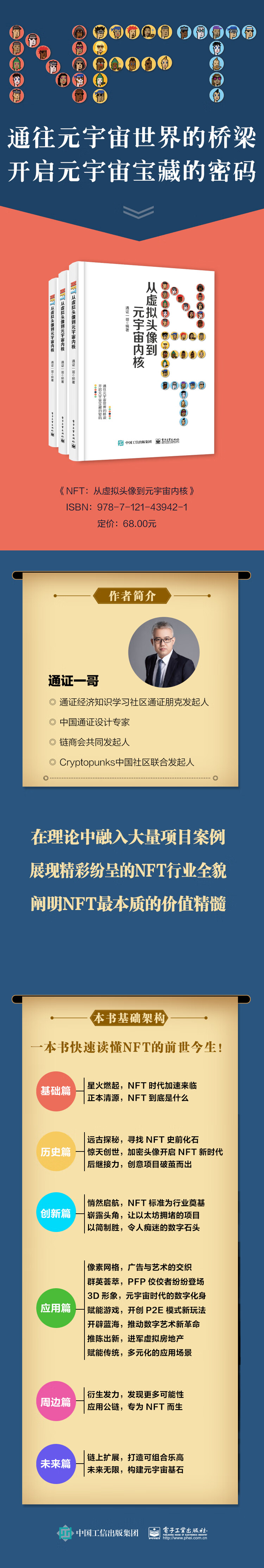 NFT:从虚拟头像到元宇宙内核 AR/VR物联网5G 等技术打造了元宇宙书籍 NFT项目书籍 区块链技术架构 通证一哥 著