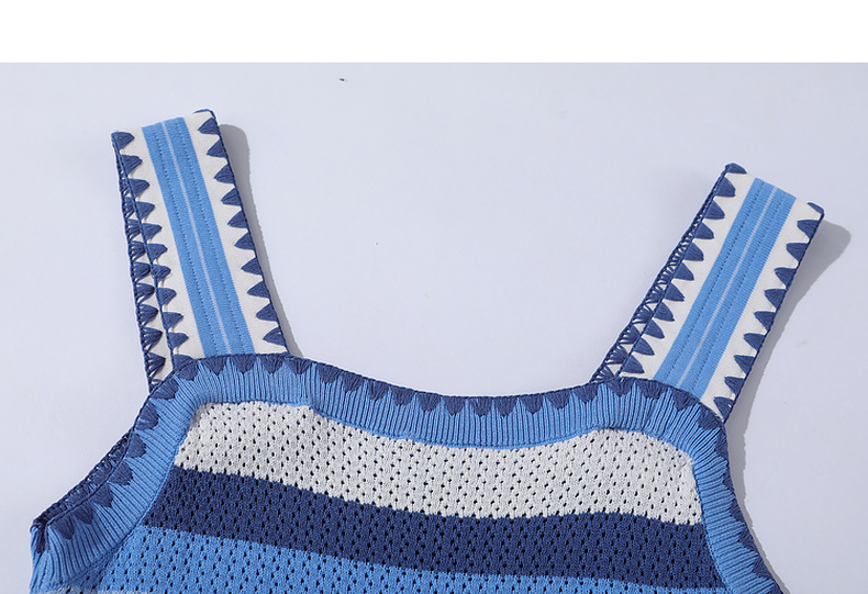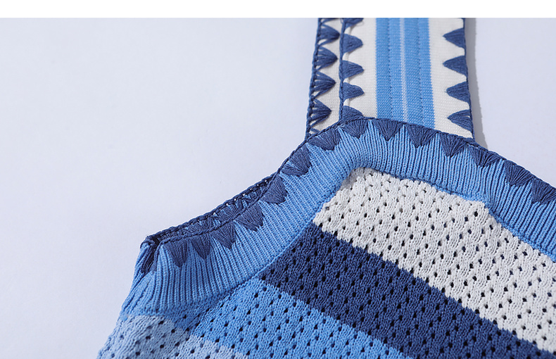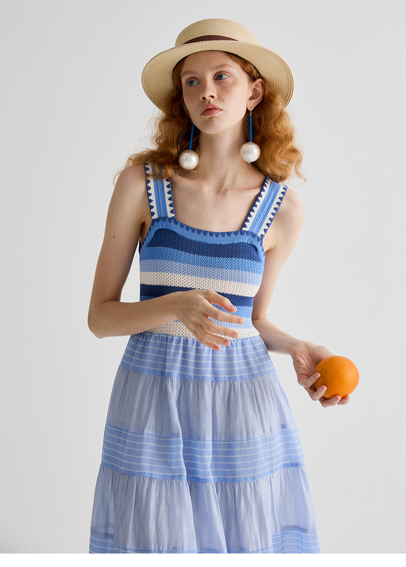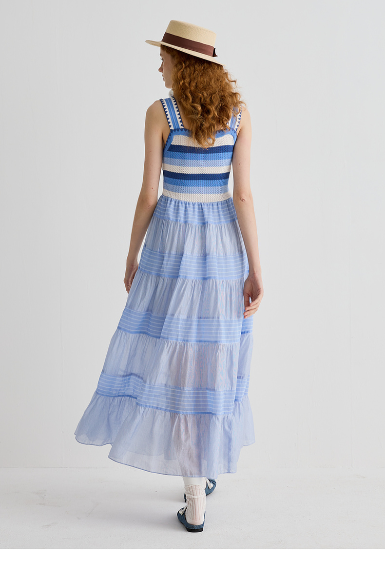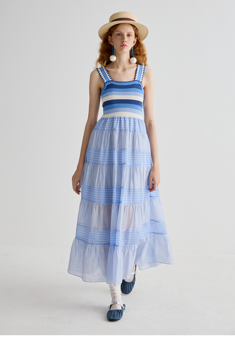 谜底连衣裙无袖女2025夏季新品度假蓝条纹紧身吊带长裙252ML0681