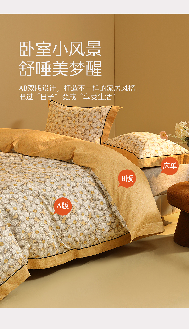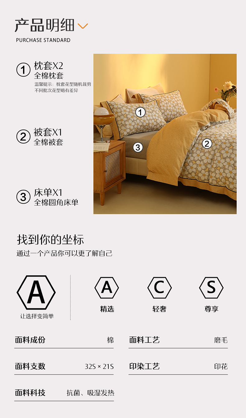 水星家纺全棉磨毛四件套纯棉抗菌套件学生宿舍床单被套