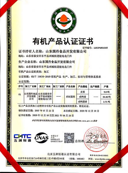 | 产品名称 | 有机松花蛋(皮蛋) |