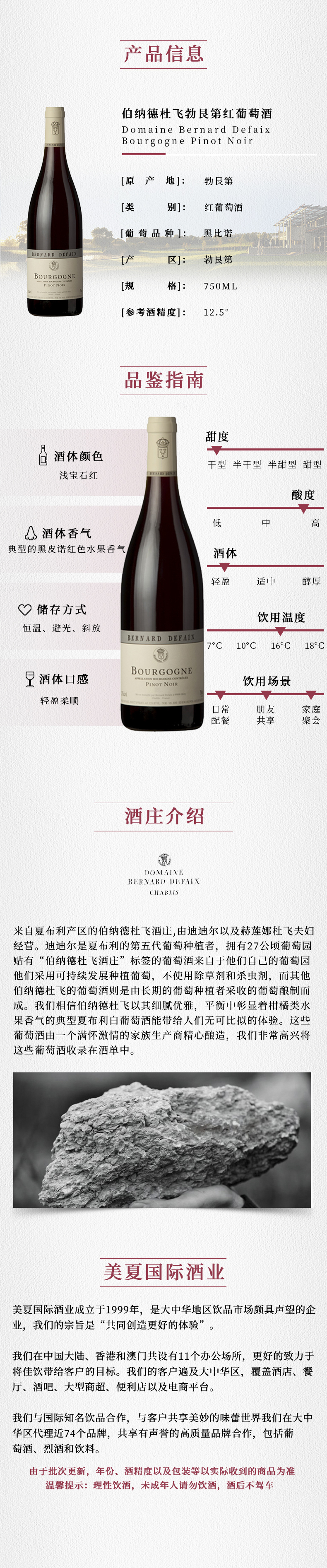 进口法国伯纳德杜飞勃艮第红葡萄酒750ml精选包邮