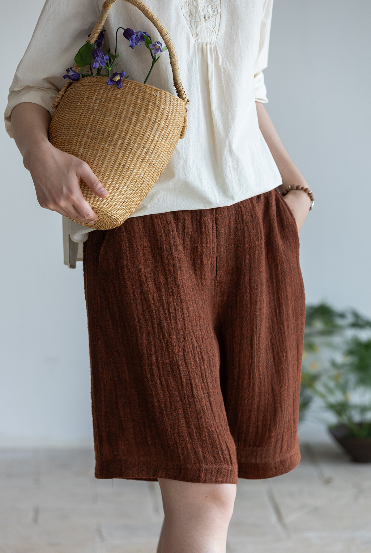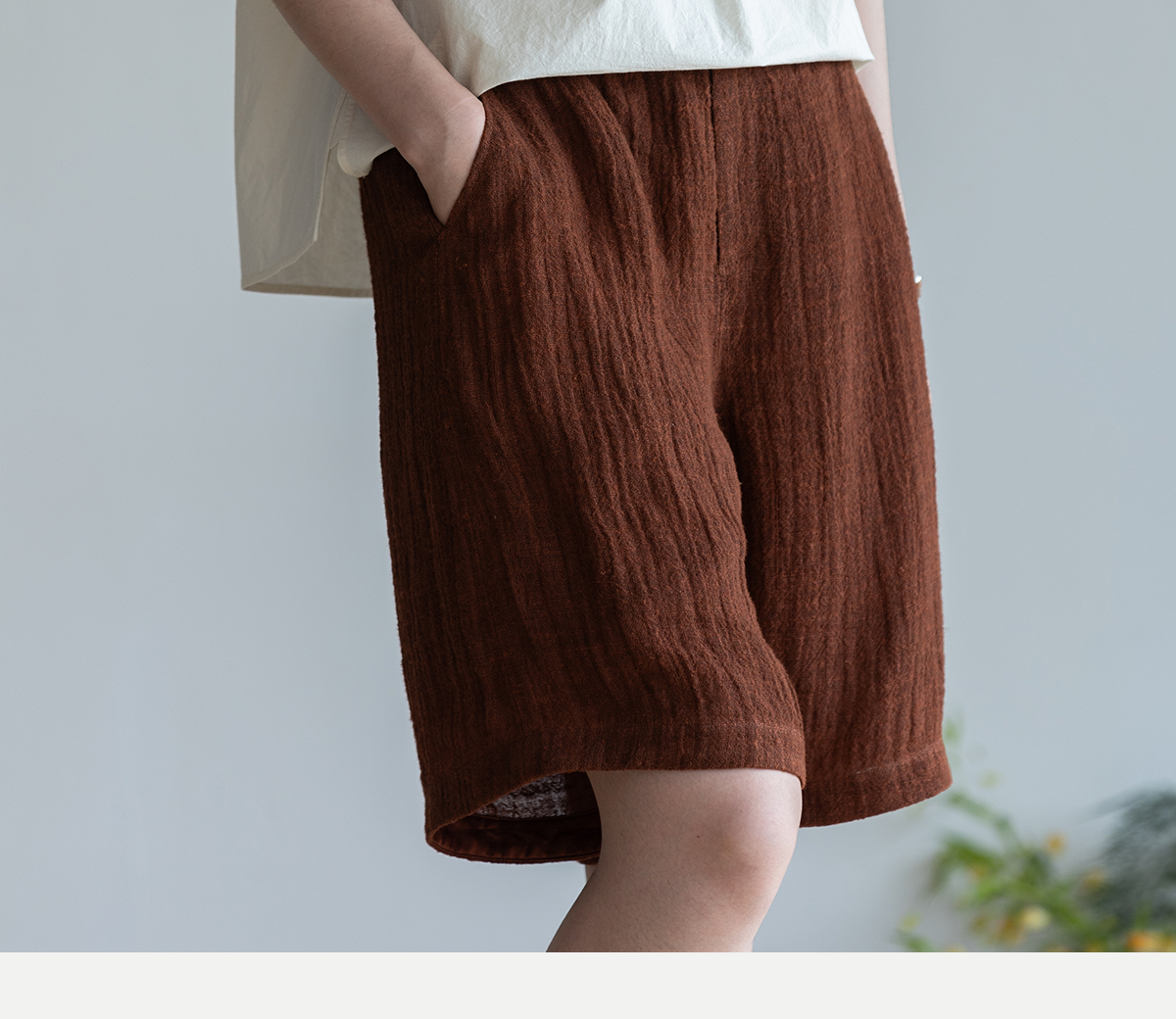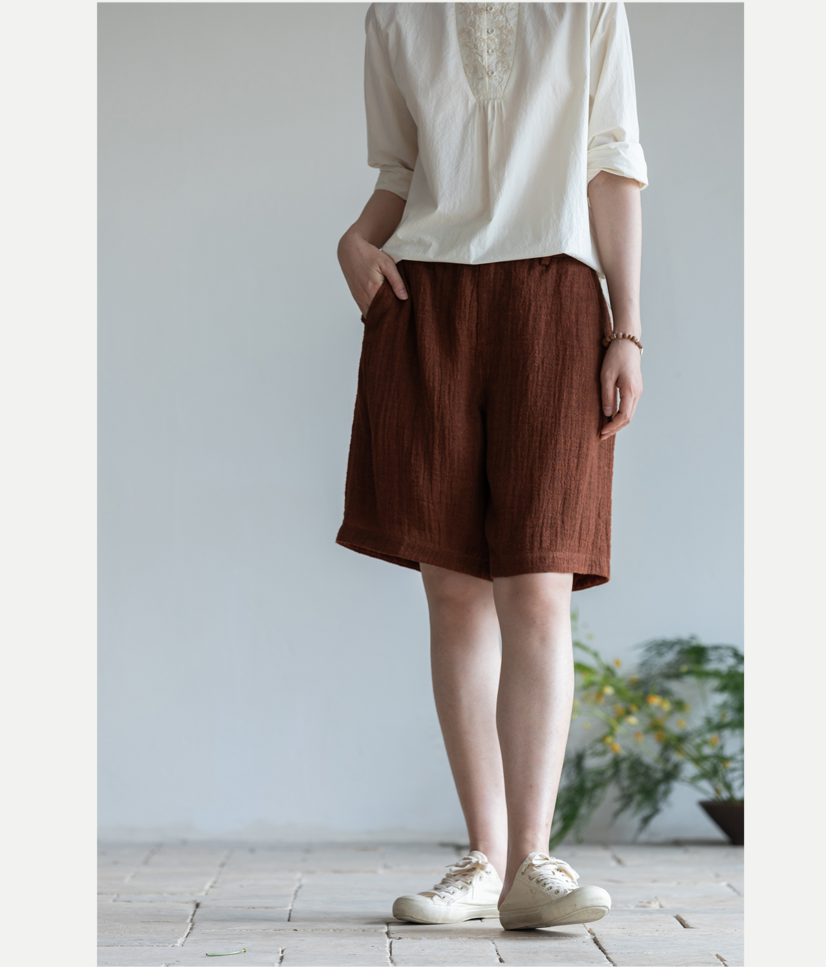 牧衣游原创 亚麻净色短裤新款轻薄宽松显瘦百搭休闲裤子 闲庭信步