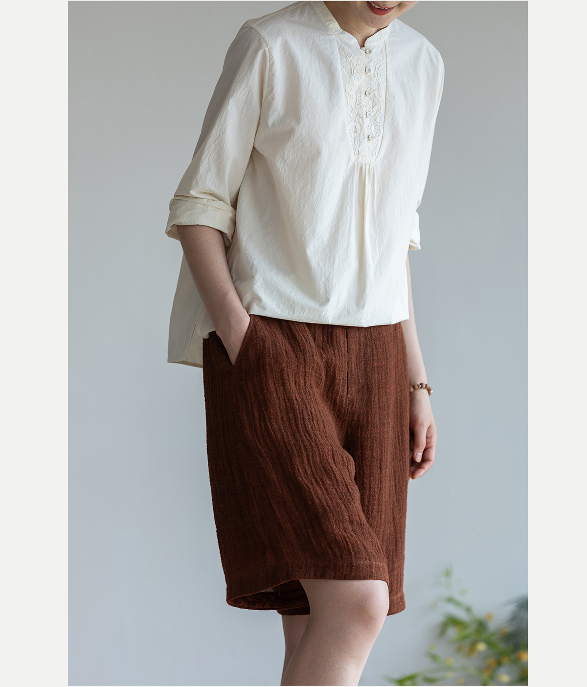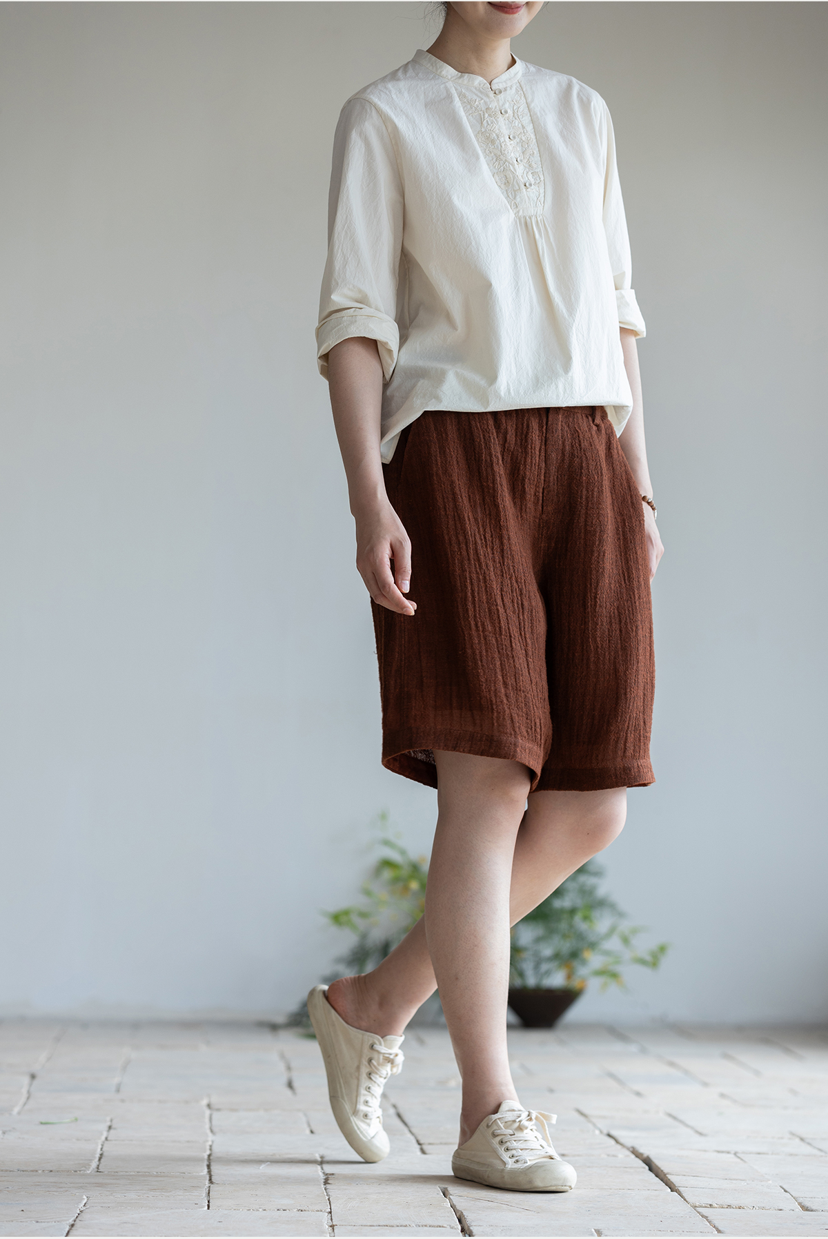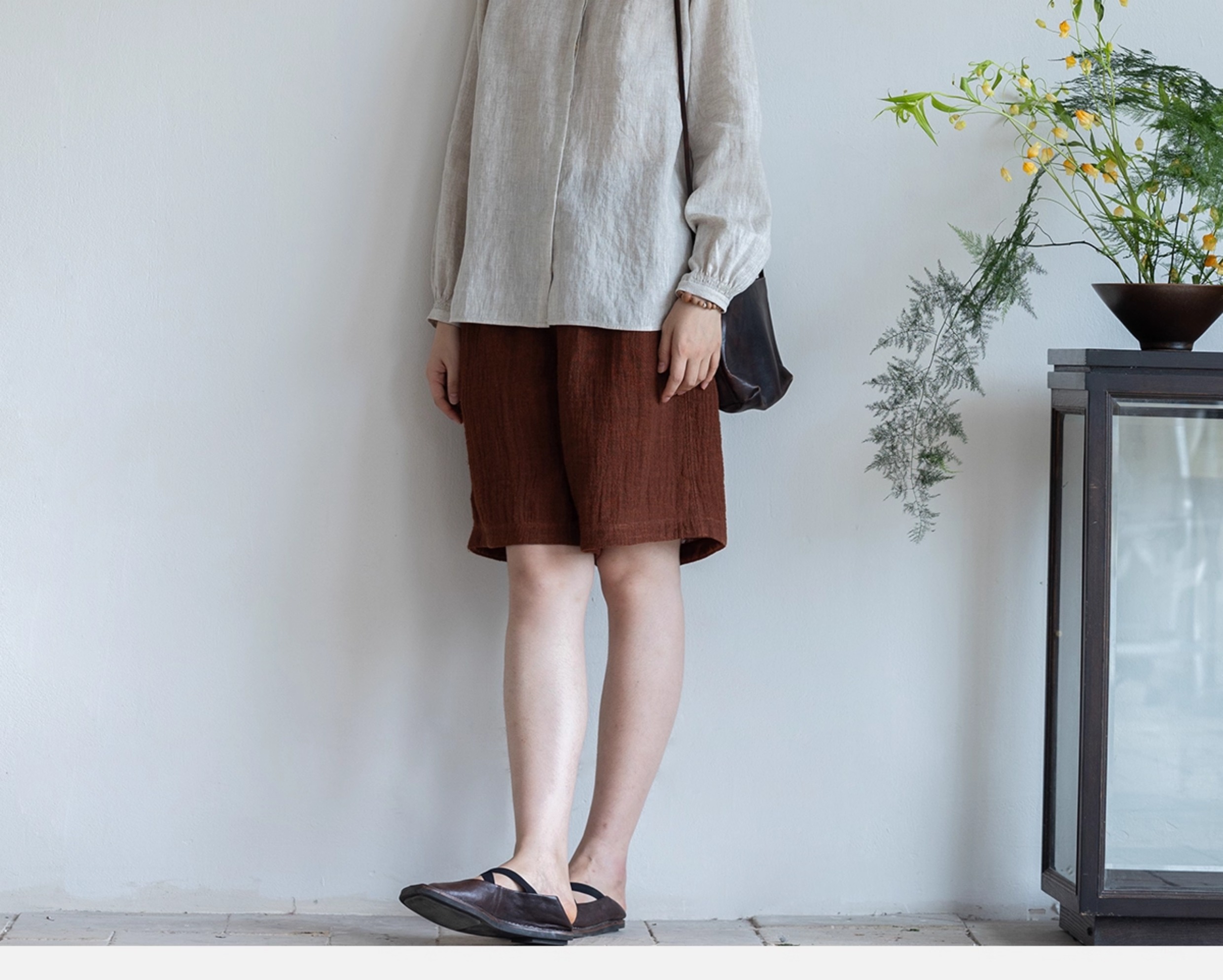牧衣游原创 亚麻净色短裤新款轻薄宽松显瘦百搭休闲裤子 闲庭信步