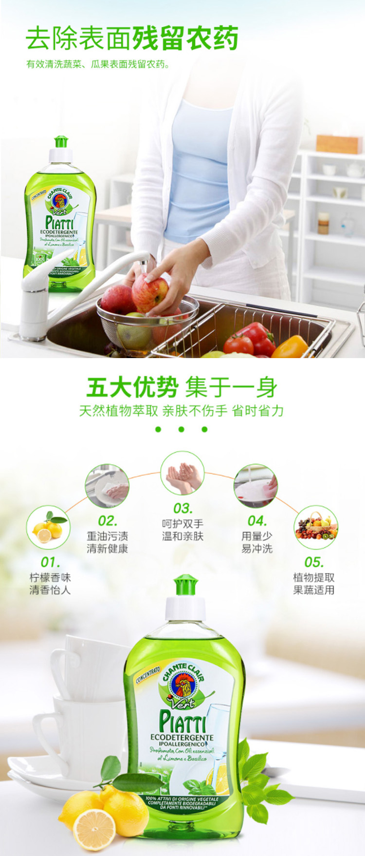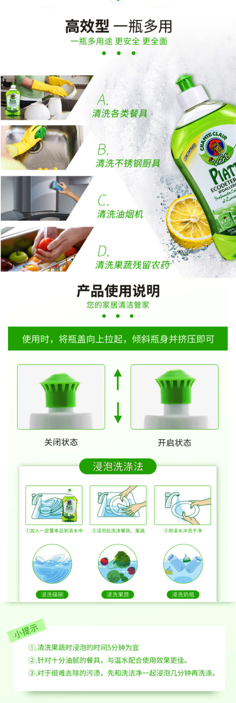 大公鸡管家 浓缩洗洁精(柠檬味)500ml/瓶