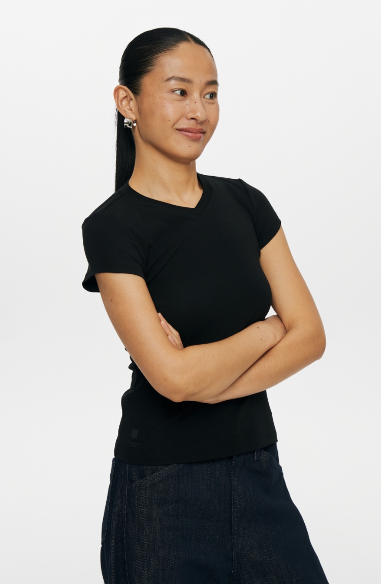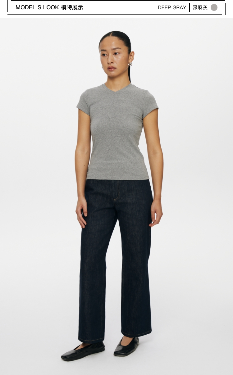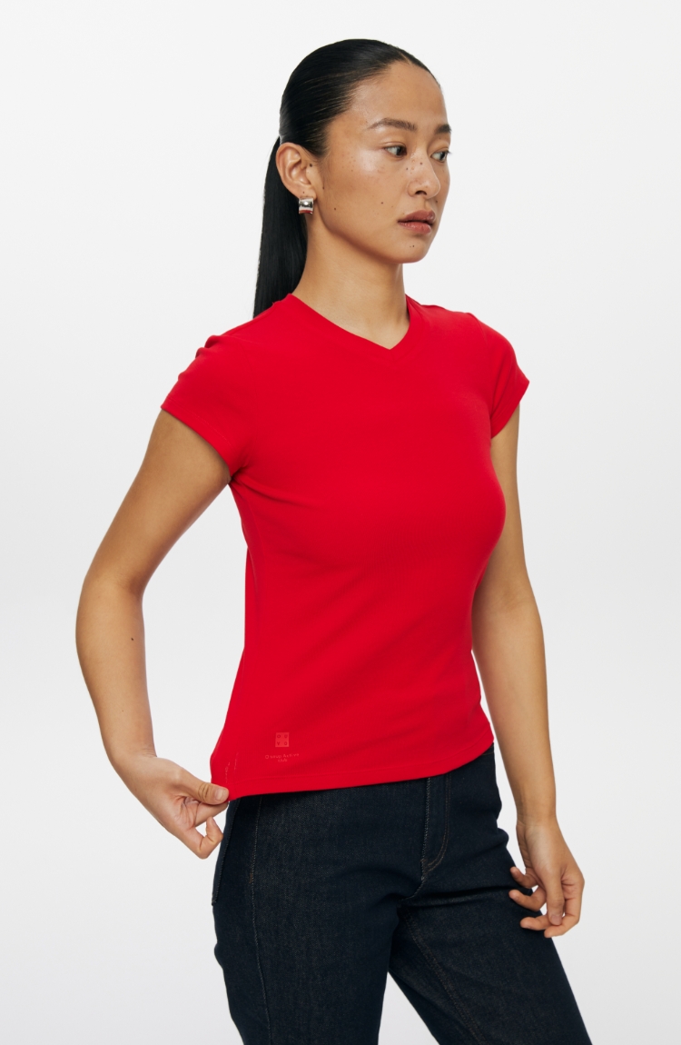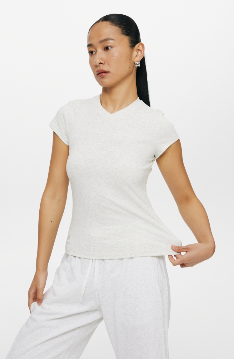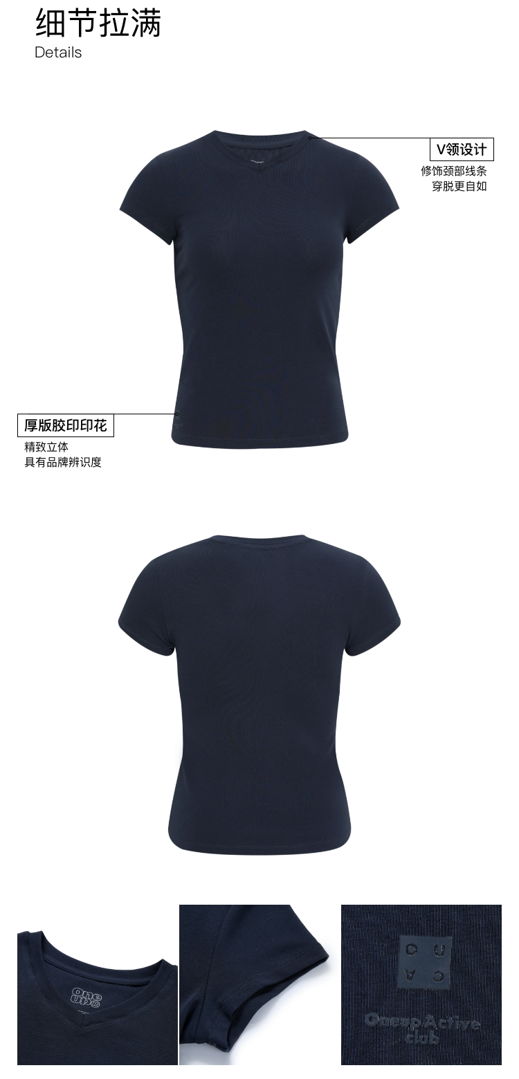oneup小v领弹力短袖