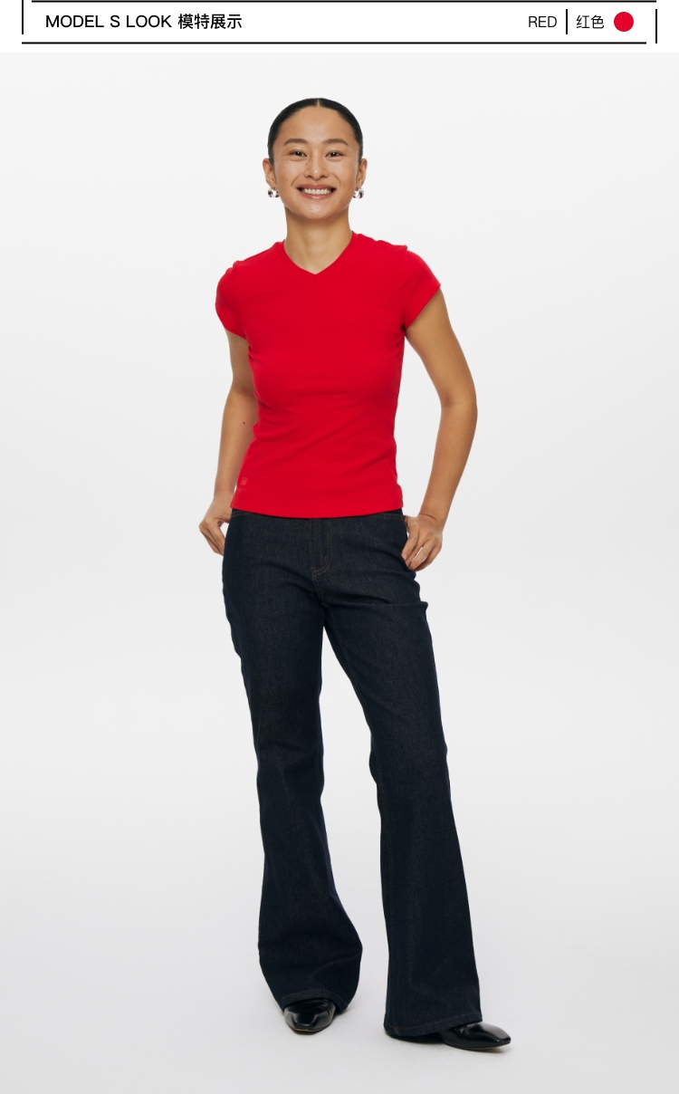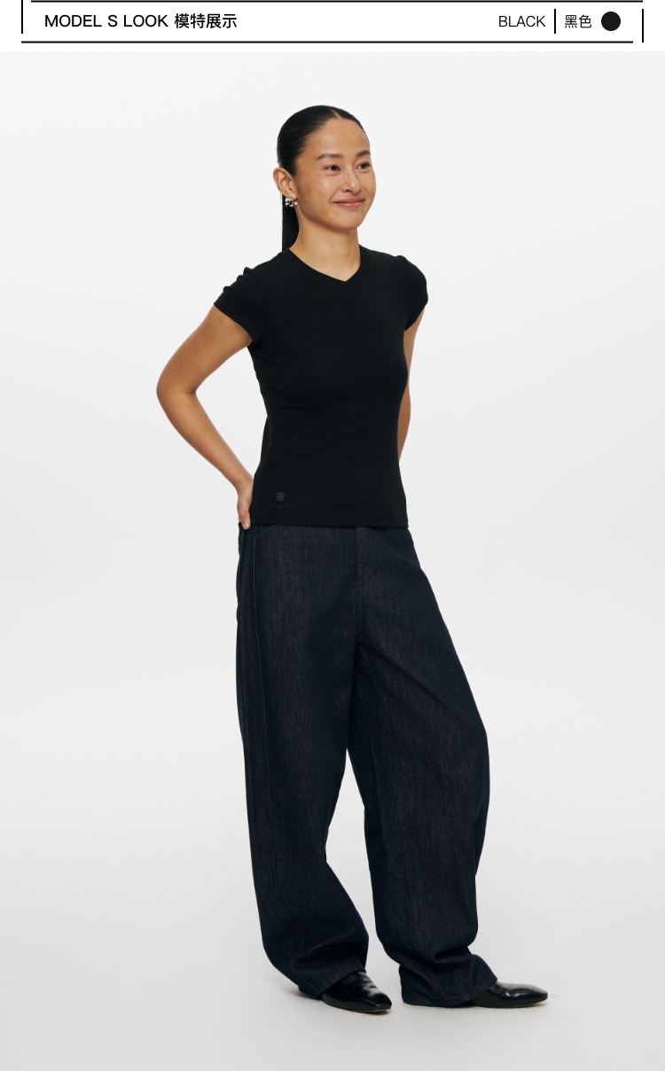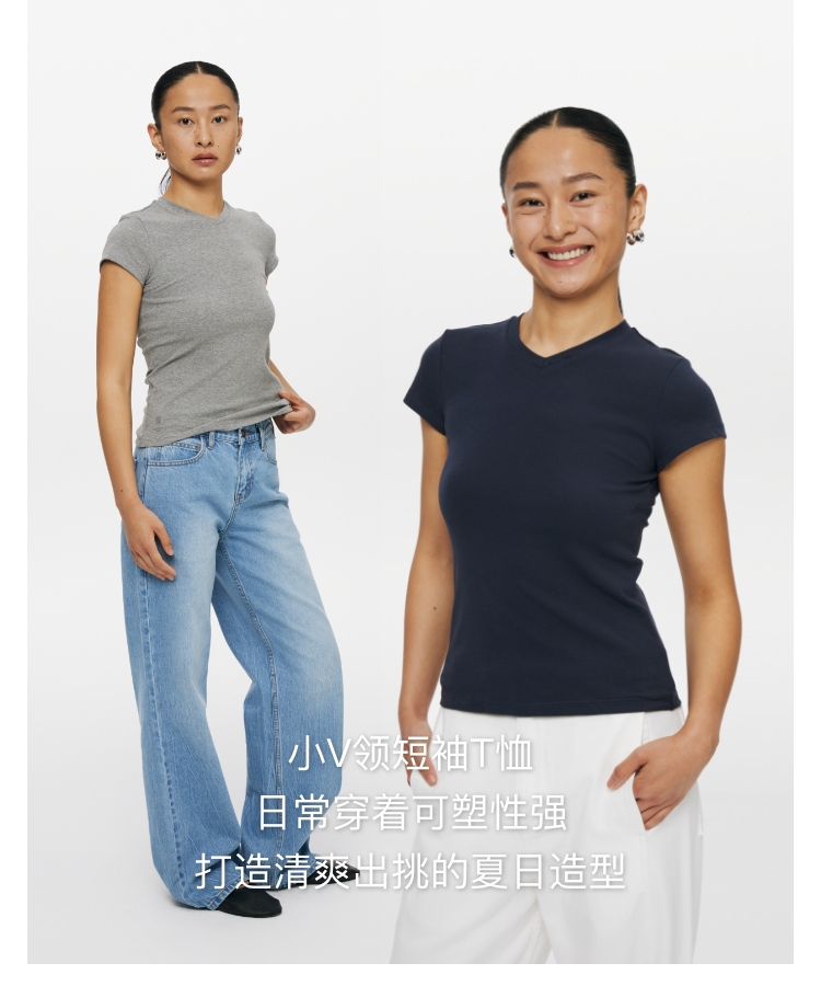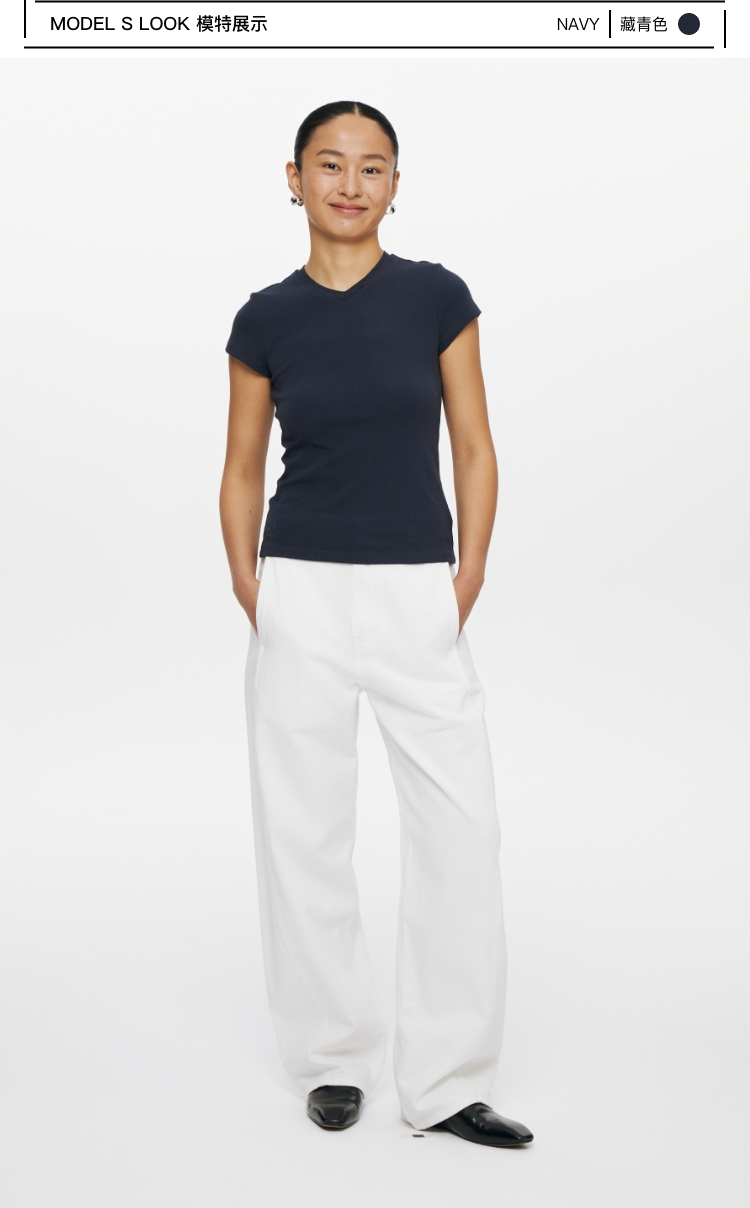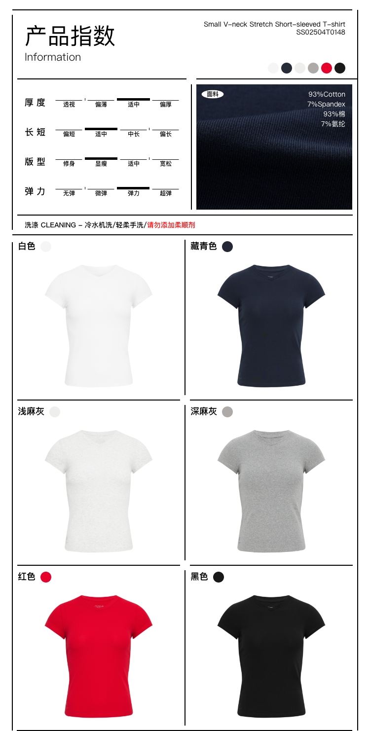 oneup小v领弹力短袖