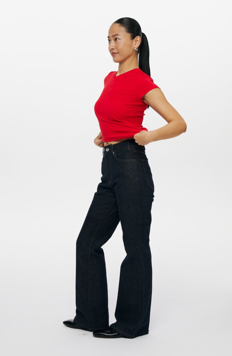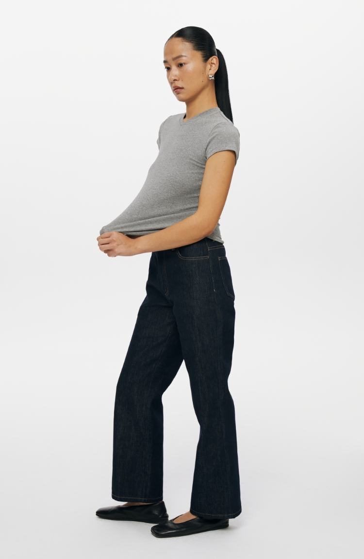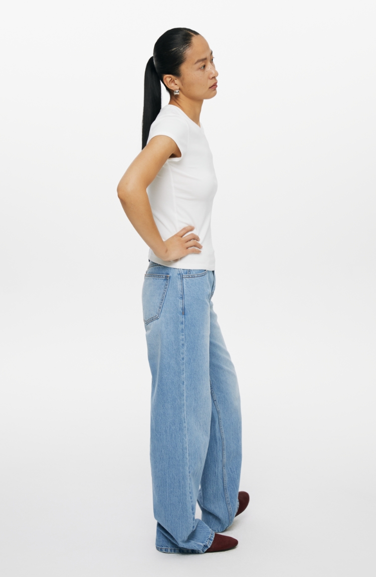 复古水洗蓝高腰直筒牛仔裤